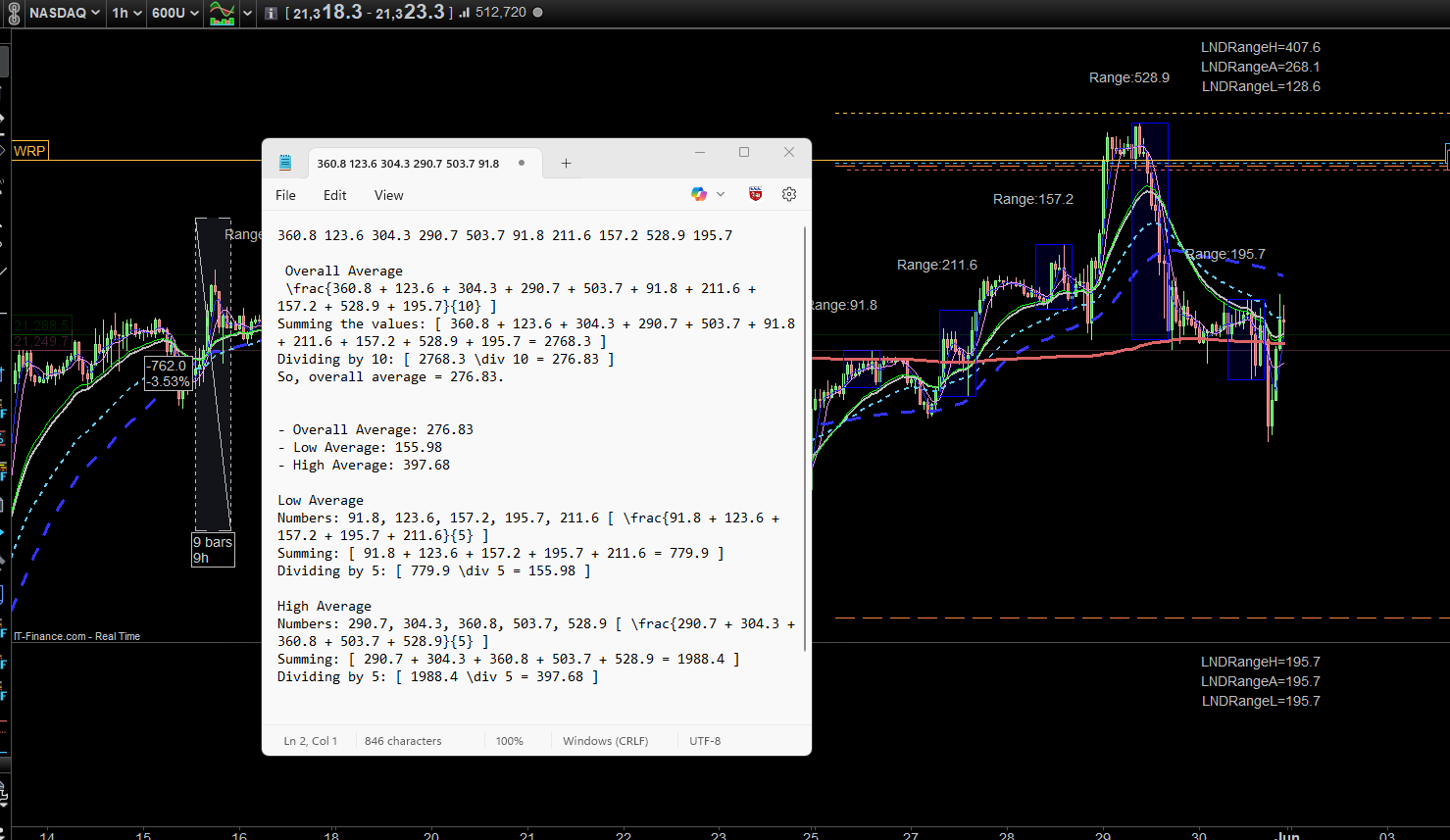 By the looks of it on the studies it’s taking the lowest Range and marking that up as the low and then it’s taking the highest range of marking that up as the high not taking the 10 ranges and split in the top five and then average in them and then obviously taking the bottom five and then finding the average out then out of them, don’t know if PRT is capable of doing that a gentleman has also responded with a slightly different way of doing it not too sure how to implement that into the code logic that’s where I struggle that might show some nice results ,,check file,,