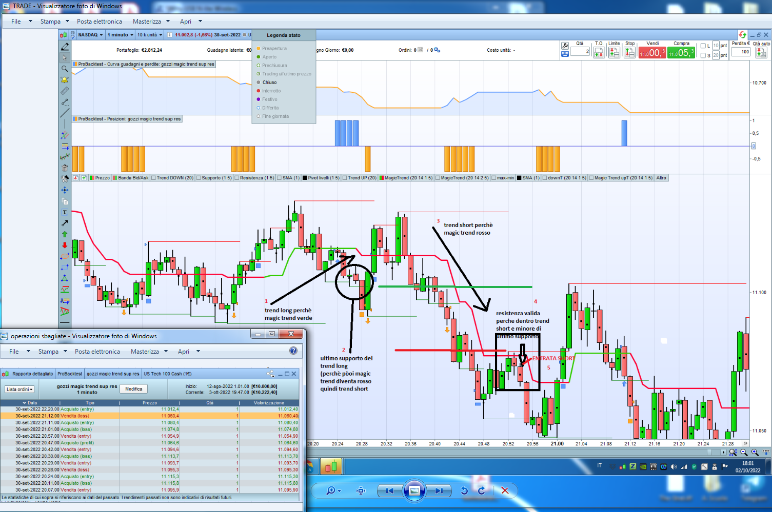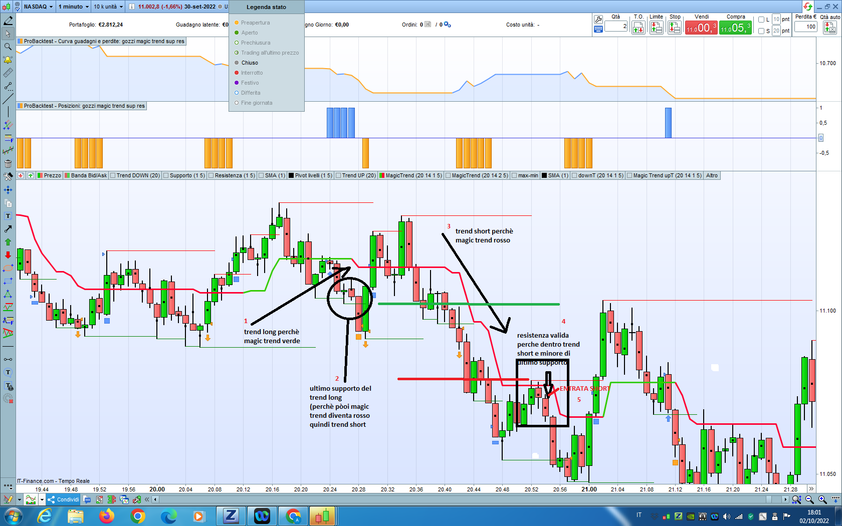 1)il trend è short perchè magic trend è rosso (condizione ok per operazione short)