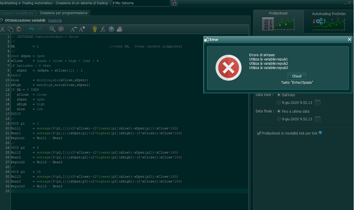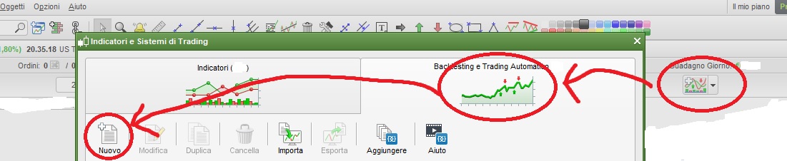 Grazie a tutti e due. Non ho capito però dove andare a copiare questo programma: se copiato tale e quale nella sez. “Creazione per programmazione” di Backtesting e Trading Automatico mi da errore perchè il codice DEFPARAM non sarebbe valido.