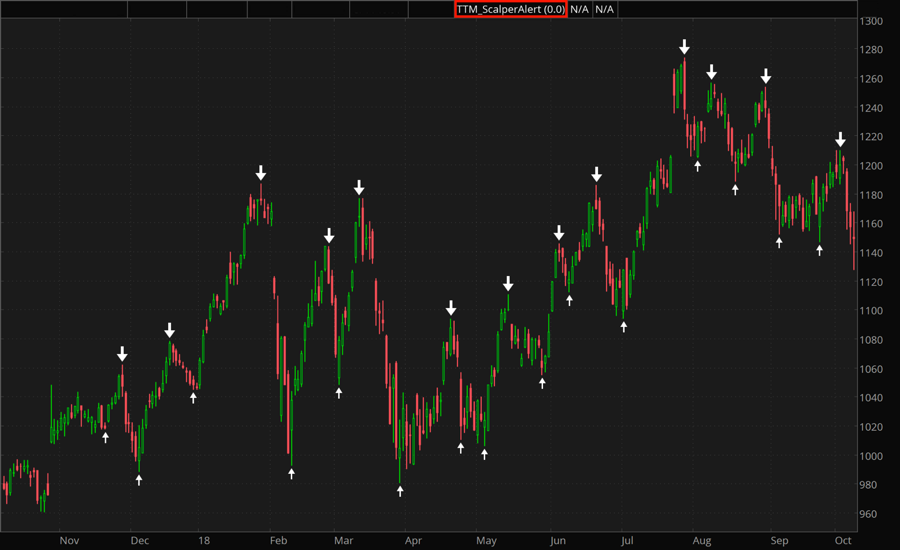 // TTM scalper indicator of John Carter’s Scalper Buys and Sells. The methodology