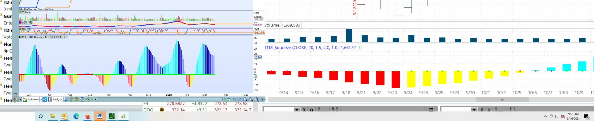 Hi and thank your for your help. I have Think or Swim and the TTM Squeeze is is a pre-built indicator option. The results do not match. The attached screen grab is from just now and reflects the QQQ. TOS is showing the green dots and PRT is reporting red dots for the same time frame. Obviously they can’t both be correct.