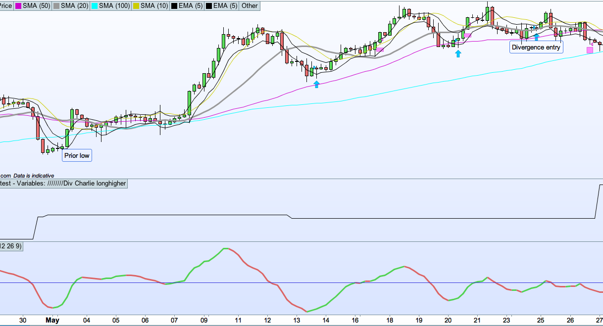 I’ve adapted it so it only shows arrows when my price-action entry criteria is met, so now the chart doesn’t look so crowded. This is going to save me a lot of time when I cross-check the validity of my divergence parameters (I think they are entering a bit too often using lows that are not significant enough).