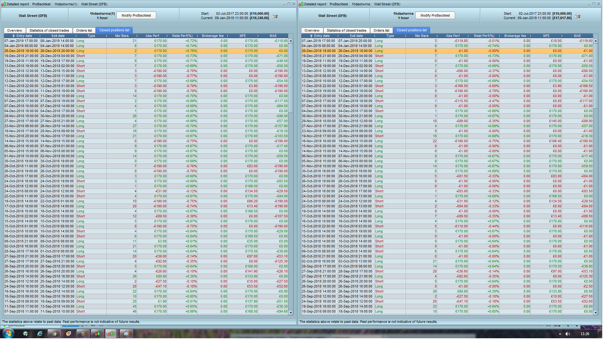 I’m having differing back test results. As you can see. The chart on the left has only a basic stop loss based on price. The chart on the right has the basic price stop loss and the added code for exiting the position at the end of an interval. As you can see in the results the chart with the added code has a lot of 0 bar trades when back tested with the added stop loss. I’m unsure why. Any help would be greatly appreciated. The code I’m playing around with is on a 1 hour time frame on the Dow.