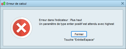 l’erreur de calcul suivante est renvoyée : un paramètre de type entier positif est attendu avec highest