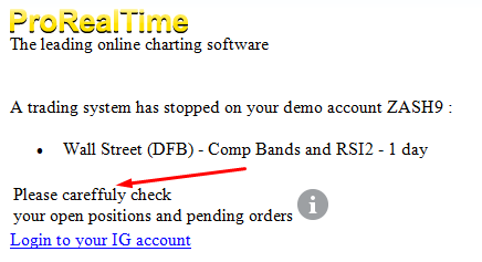 I received a warning email from ProRealTime to tell me a system had stopped.
