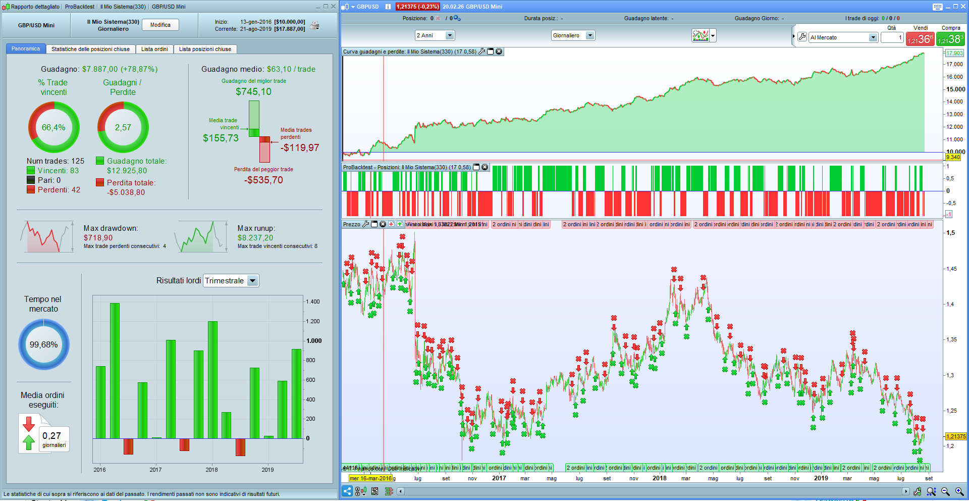 Il sistema ha restituito risultati positivi su vari mercati e può essere utlizzato con la funzione cumulateorder True/False ma solo su Timeframe giornaliero/settimanale.