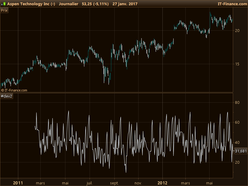 bonjour, j’ai copié le code ci dessous trouvé sur ce site pour créer le connorsRSI sauf qu’on obtient des valeurs négatives sur l’indicateur. sur des dizaines d’actions. Là, sous les yeux, j’ai AZPN le 17 oct 2008 avec une valeur de -7. je me demandais si qqn était parvenu à coder sous prorealtime le connorsRSI en état de marche, sans bug ?