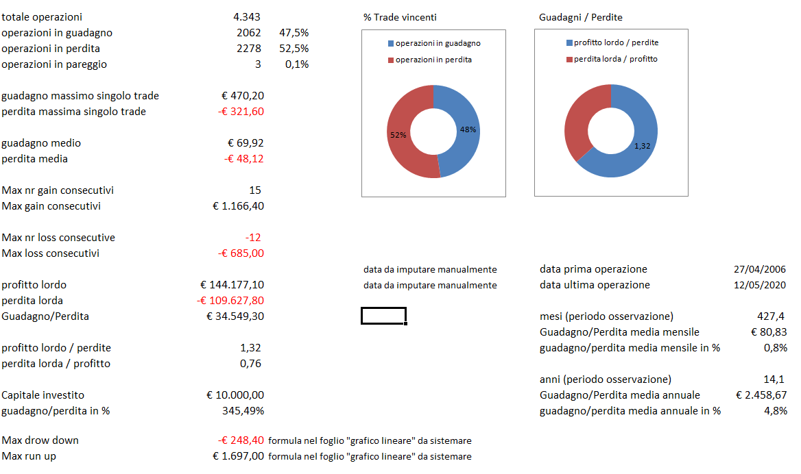 La bozza del file excel invece elabora i dati di strategie in fase di backtesting.