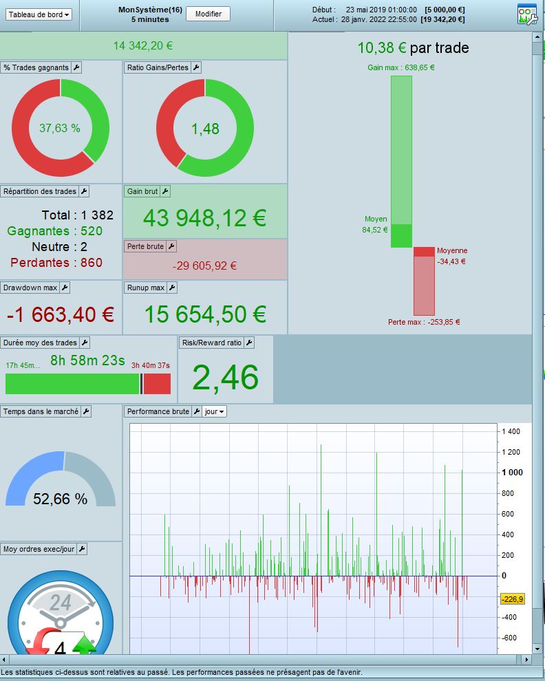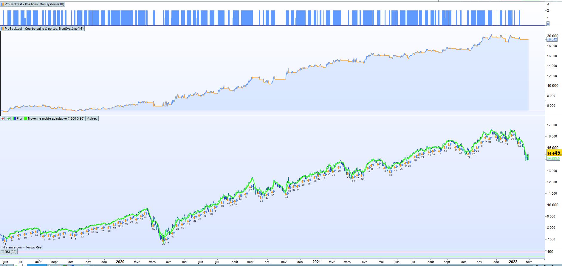 Il faut recalibrer les moyennes mobiles tous les mois / 2 mois environs en faisant des backtests