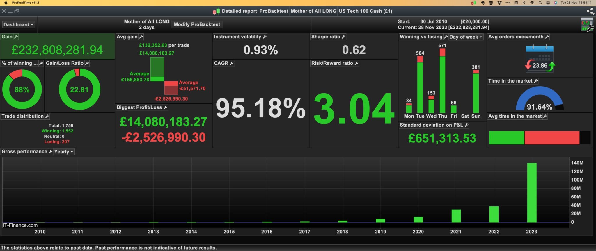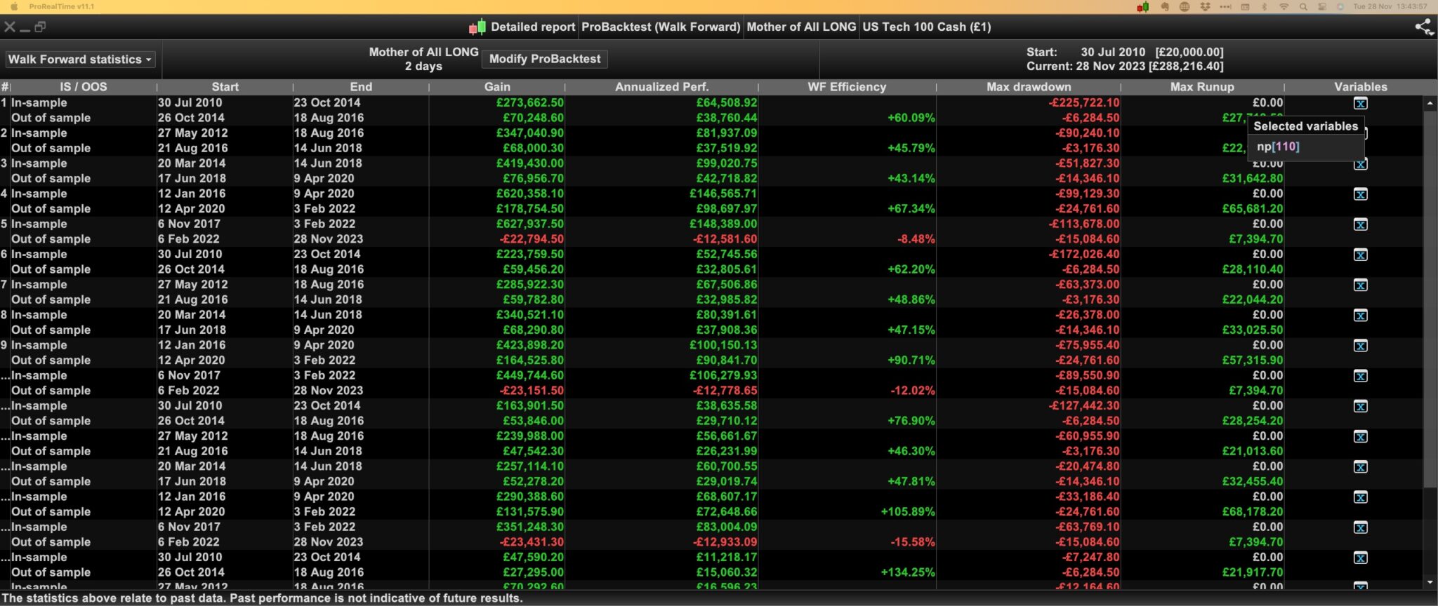 Please notice that although I use such means in practice, in real life it does not work out because of too many times our Systems being kicked out because of IG broker issues**. So you would get crazy of restarting them with the proper Money Management parameters fed (and which you need to keep track of because nothing else does that for you). Net I now don’t use it, because it would take more than one day effort per day and one human being can’t do that (hire people for it …).