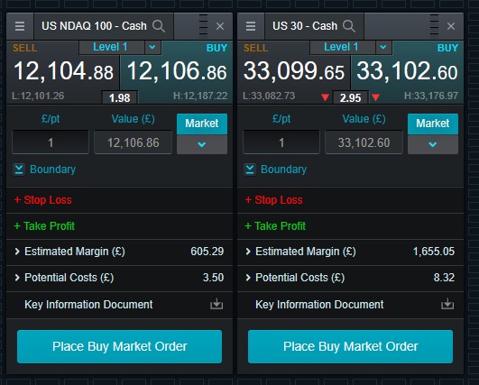 But £1 per point on Nasdaq gets you 12000 ish Contract value but £1 per point gets you 33000 ish Contract value on US30.