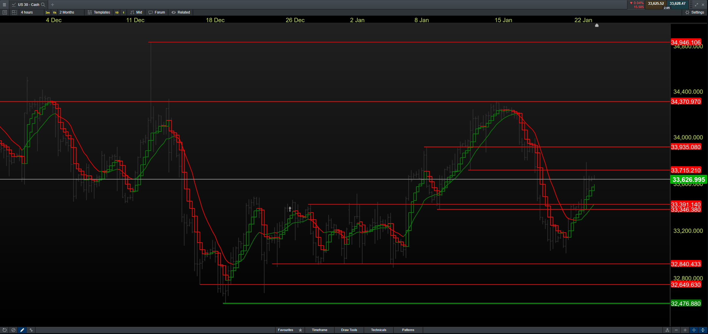 4H timeframe pointing to the 34000