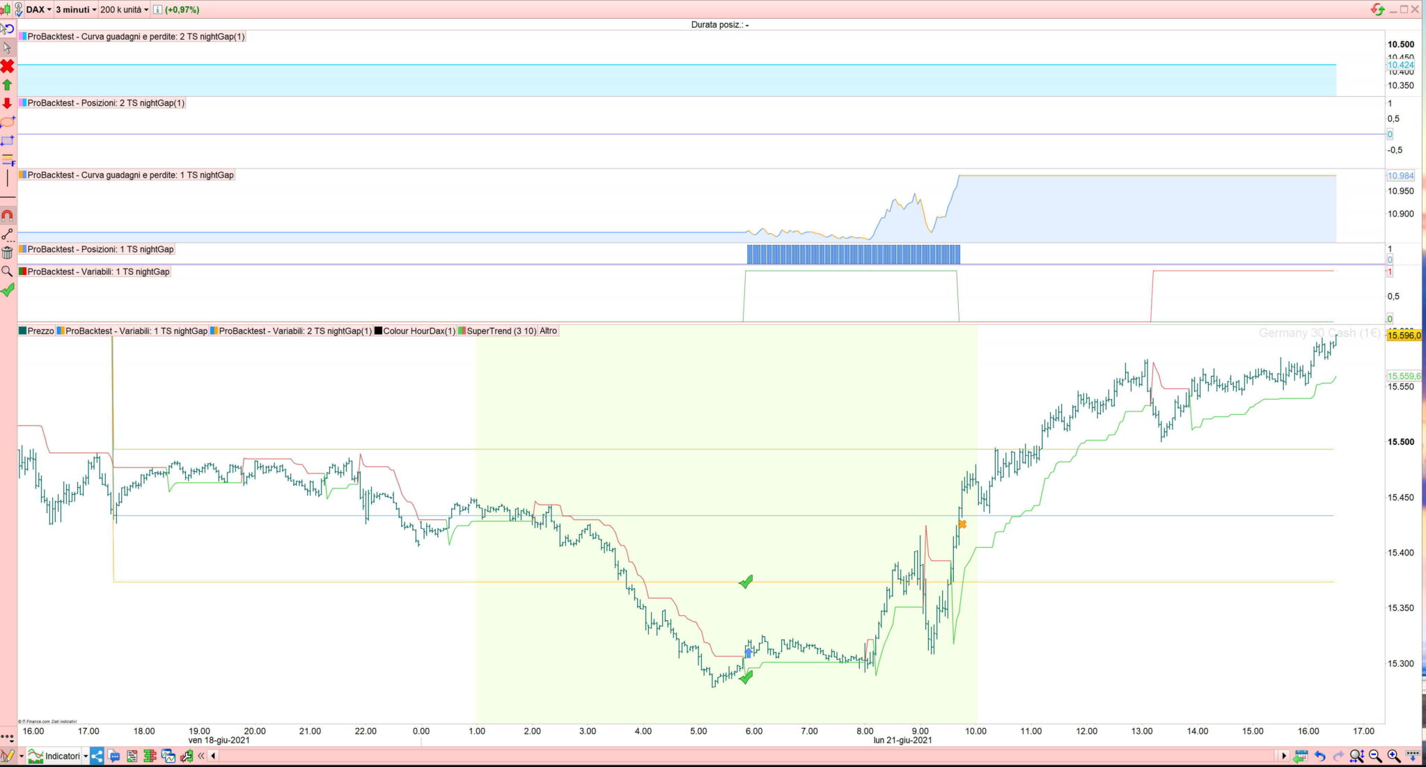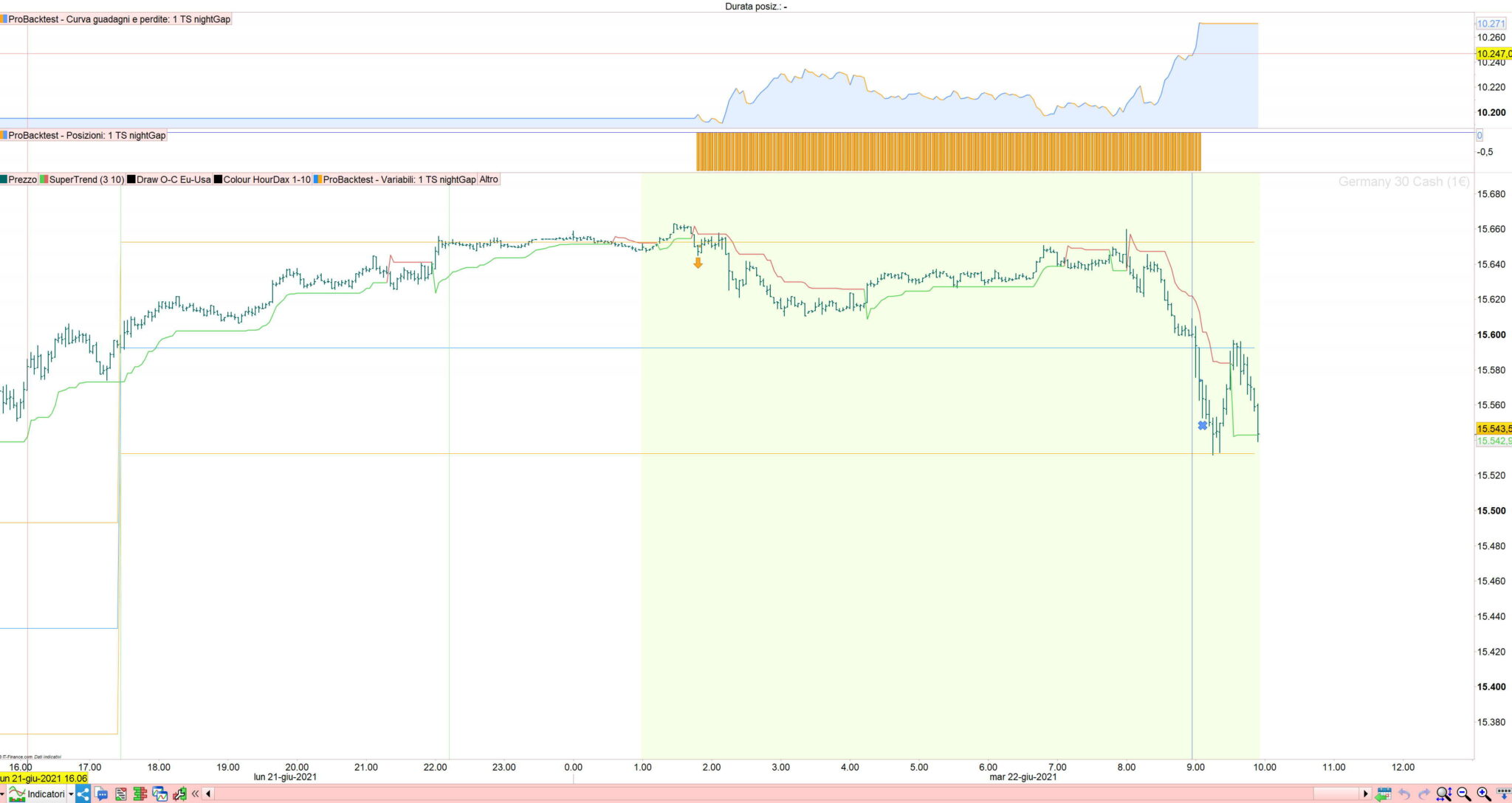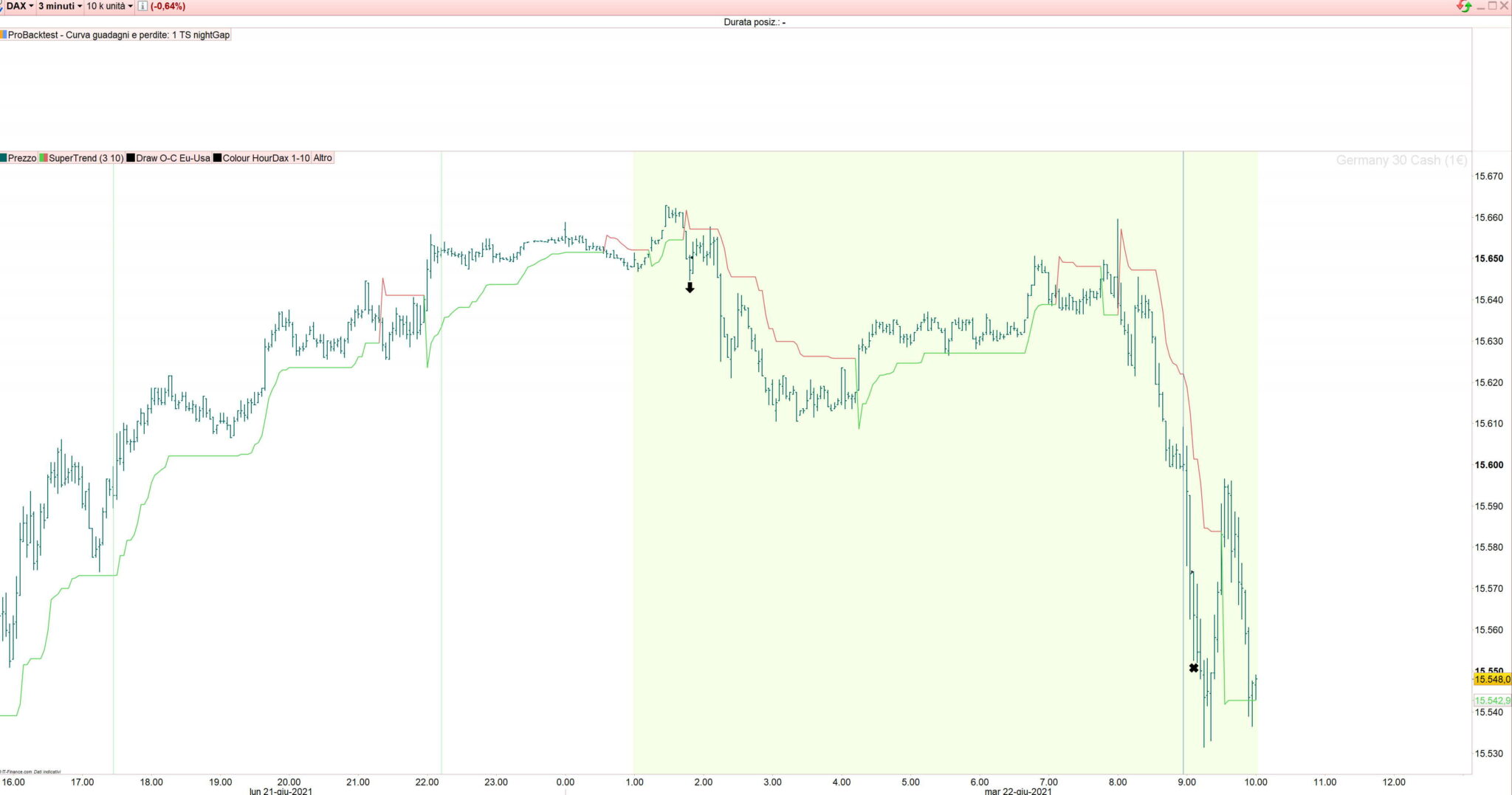 Quando il TS entra long alle 00:36, non si è mai creato un minimo inferiore a 50 punti (dalla chiusura a 15715.3) che attivasse il flag.