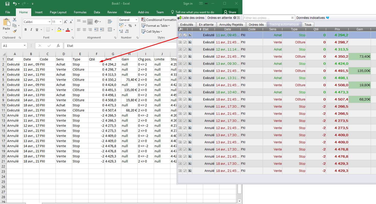 Comme le dit Nicolas: “Vous pouvez glisser et déposer directement à partir de toute liste de ProRealTime directement dans Excel”