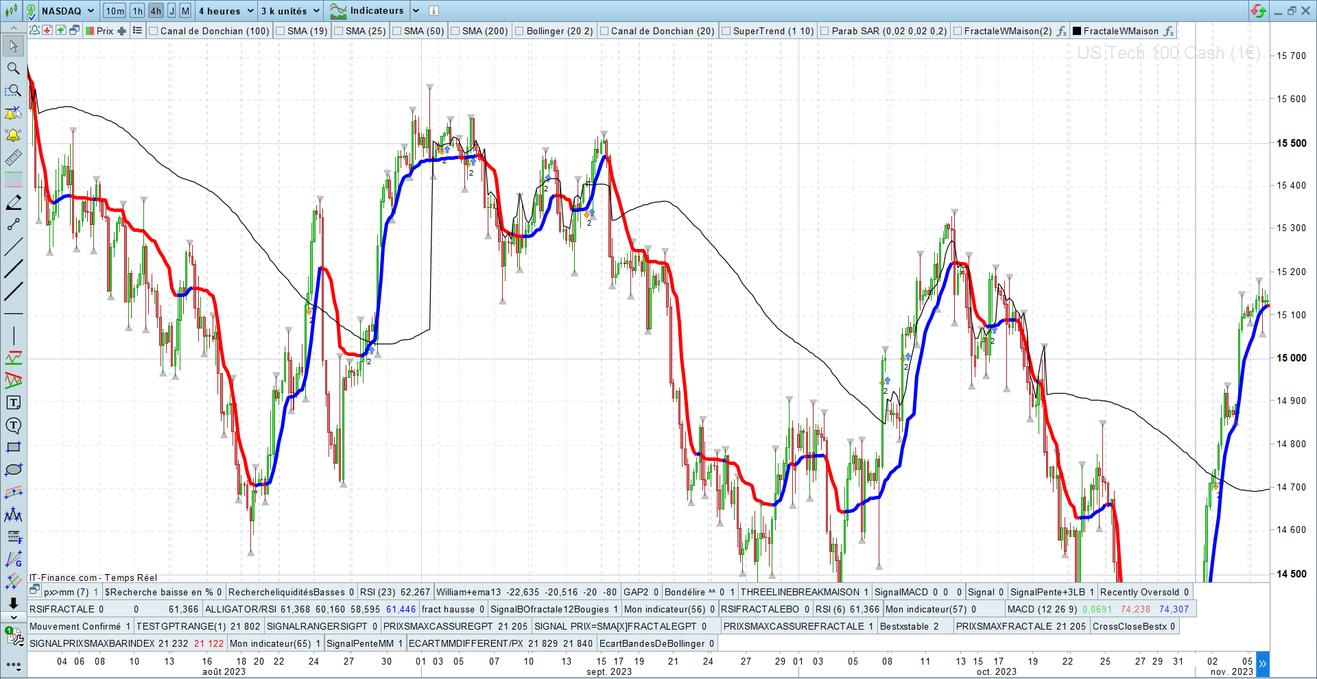 Je travaille actuellement sur un projet d’indicateur dans ProRealTime, et je rencontre une limite technique que je souhaiterais soumettre à vos expertises pour confirmer ou infirmer mes observations. Voici un résumé de la problématique, des tentatives effectuées, et de mes conclusions.
