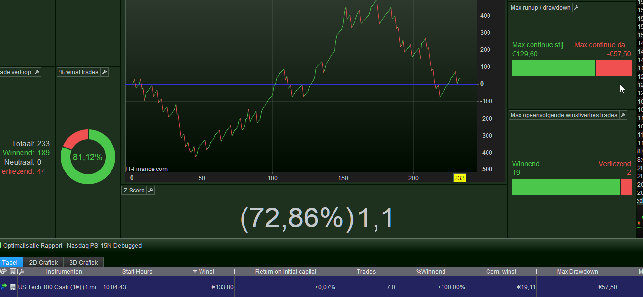 Below you see a Statistics form which does not match the backtest result. And, there is no way to make it match as it just “does it wrongly”. When the backtest is finished, you can see the statistics screen refreshing, but with the former content. Except one thing : The Max DrawDown you see under the mouse arrow.