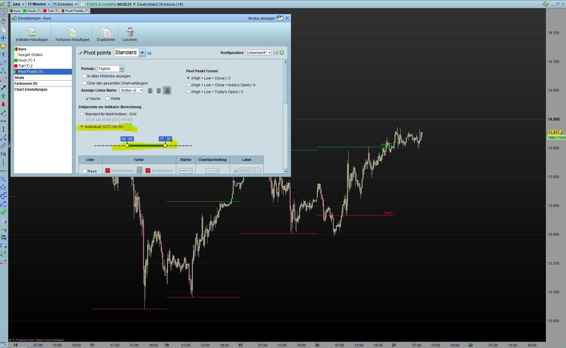 Since today no correct display high-low lines, the daily lines are missing but those of the previous days are displayed although not selected at all!