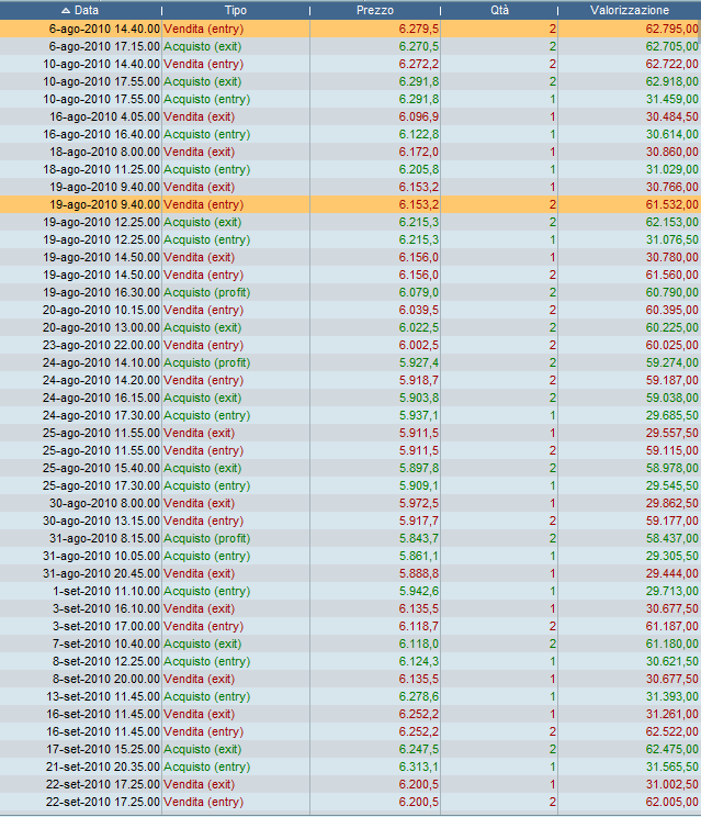 L’elenco delle operazioni decorre dal 06/10/2010 mentre il grafico è visibile solo da fine 2016.