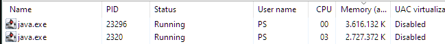 Important : How it really turns out depends on your amount of installed memory in combination with the setting of how much one Java instance may consume. De default is 6GB, but PRT is out of control (in this V12 version for IG) and it will go beyond that. At 8GB things start to be bad.