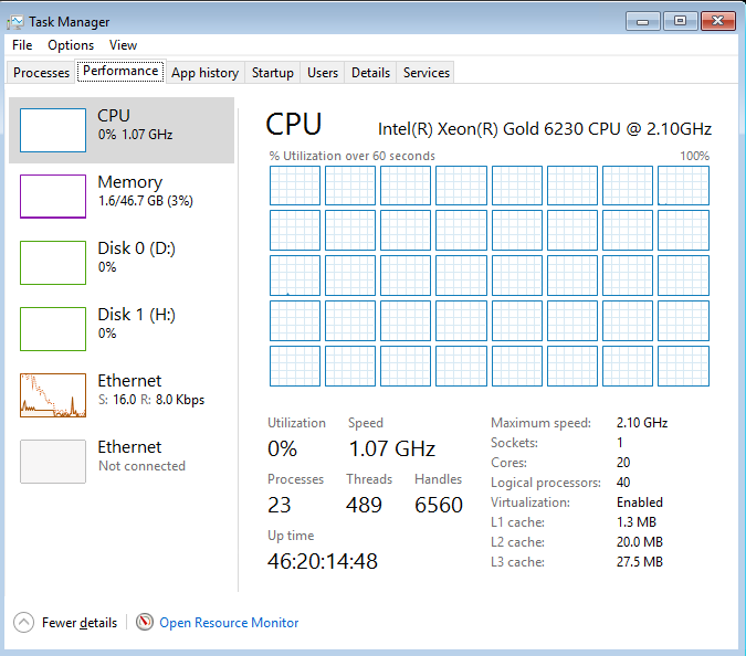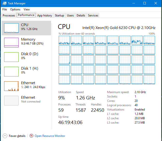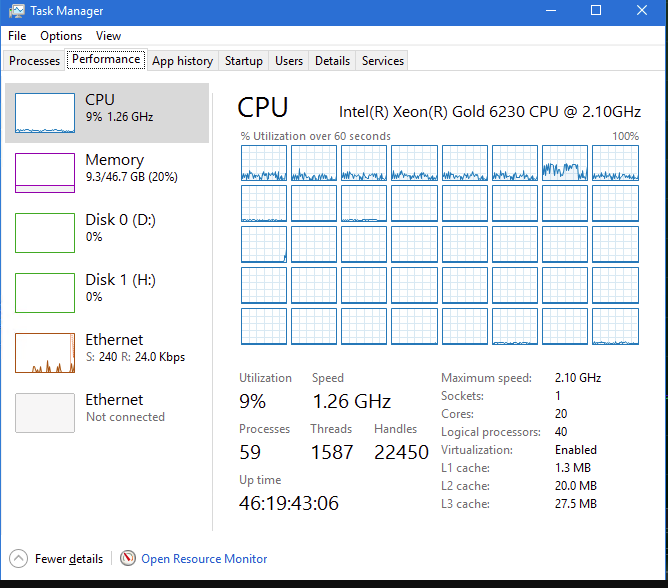 I now fired up PRT-IG V12 on an empty PC, which has been made for spreading many tasks over its processor, which is a Xeon 6230 (20 native cores, in this case set up in hyperthreaded fashion, thus now 40 cores).