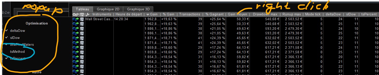 Also the variables in the results table do NOT appear in the same sequence / position as they appear in the optimiser window where we enter the min, max and step values … so it all adds to rising frustration when trying to complete optimisation runs.