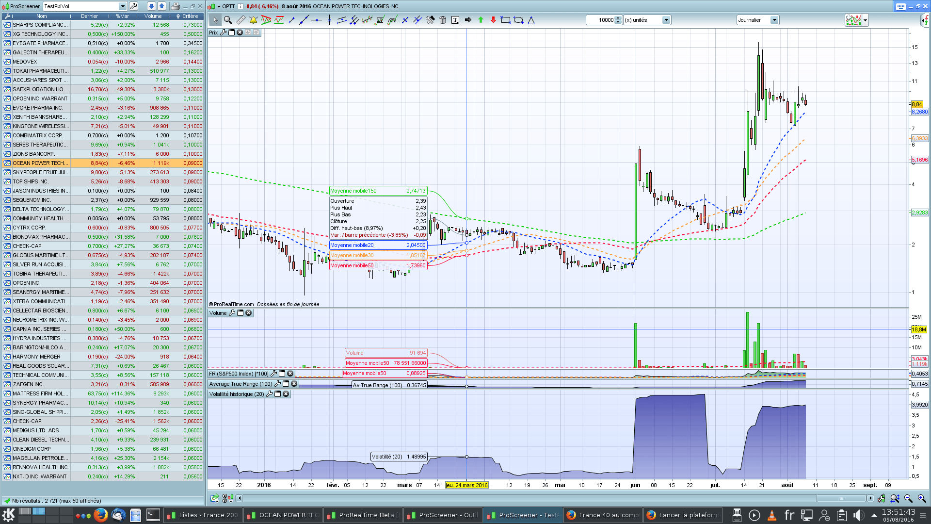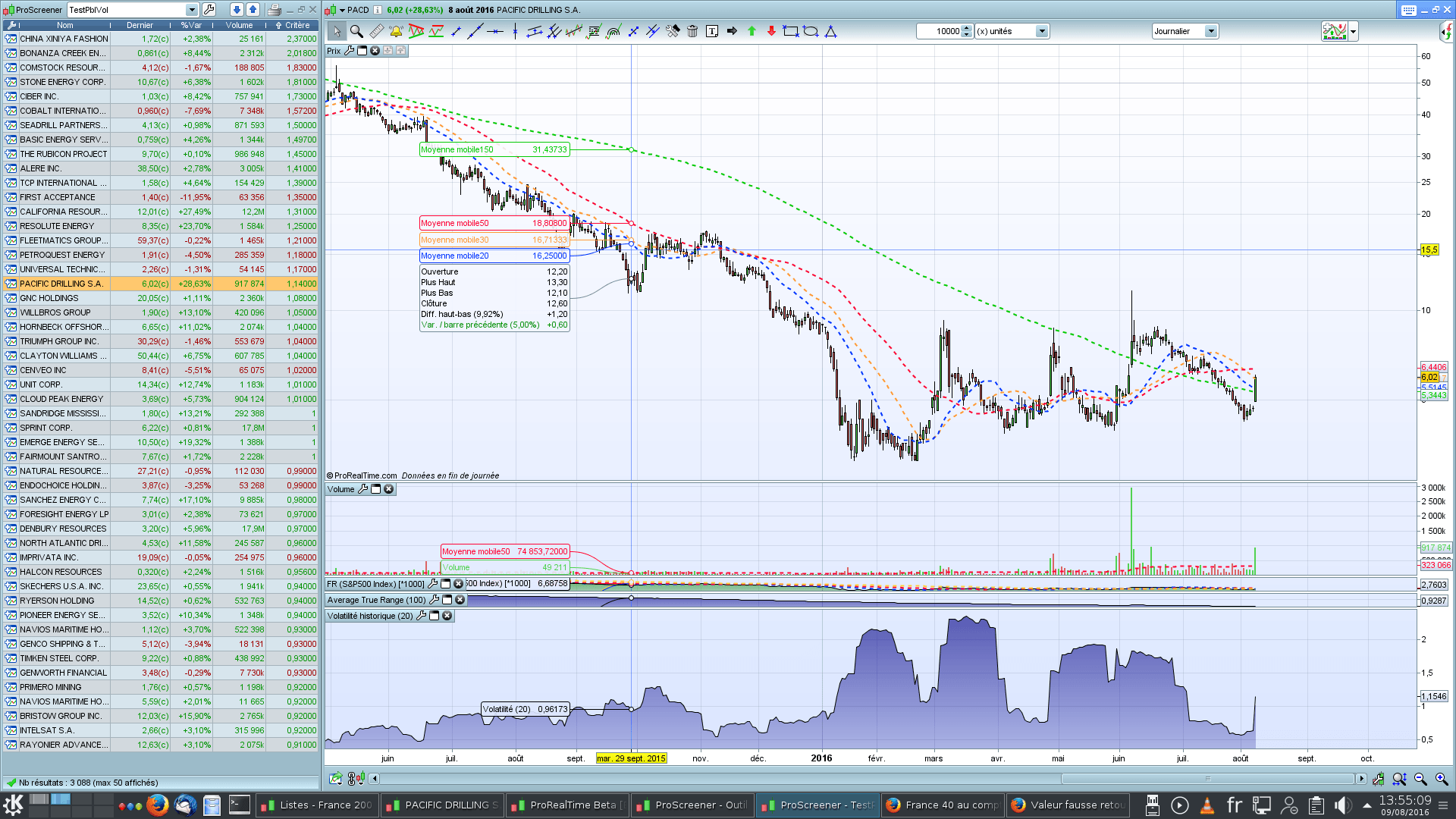 J’ai eu des nouvelles de mon côté. Il semblerait que l’indicateur “HistoricVolatility” soit calculé différemment dans ProScreener vis à vis de celui de ProBuilder. Ceci expliquant les différences existant entre ce qu’affiche un graphique avec l’indicateur attaché et les résultats obtenus avec le screener.