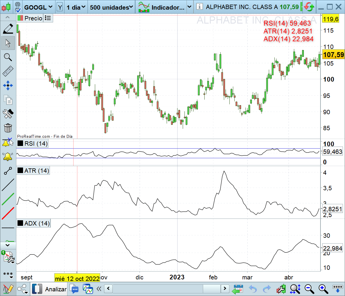Mi pregunta es si se puede indicar en la ventana superior que representa el gráfico de precios el valor de los indicadores de manera similar al gráfico adjunto (En este caso la parte superior derecha, también sirve cualquier otro lugar de la ventana que representa el gráfico de precios).