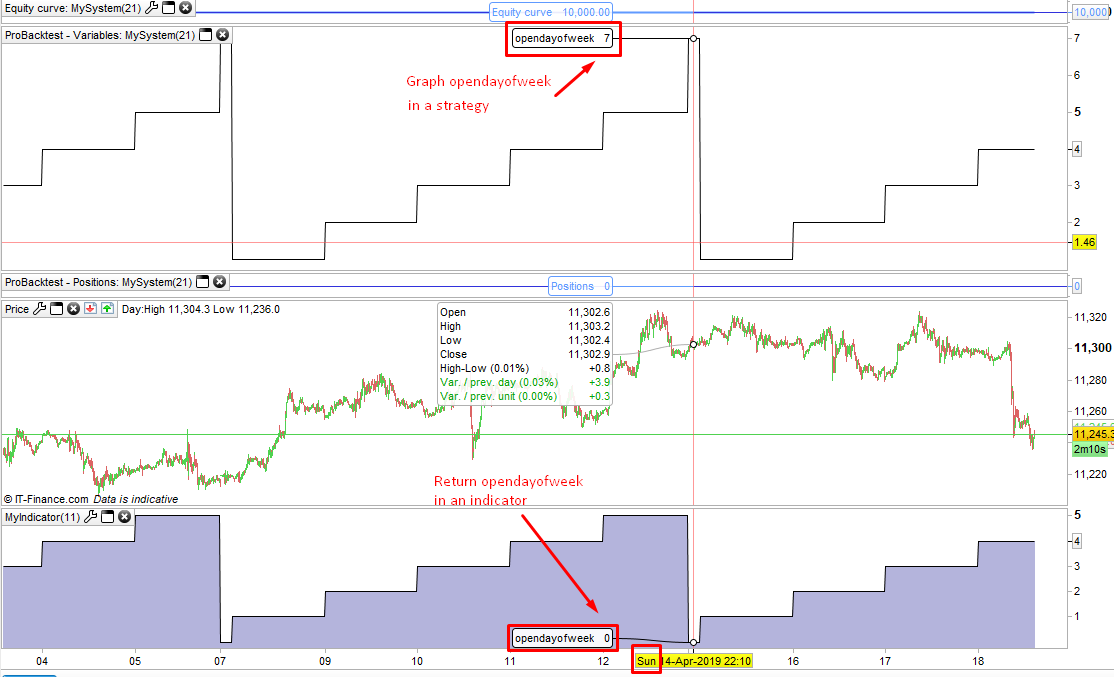 I recently noticed that the returned value for opendayofweek and dayofweek is different in a strategy to an indicator. It returns a value of 7 in a strategy and zero in an indicator.