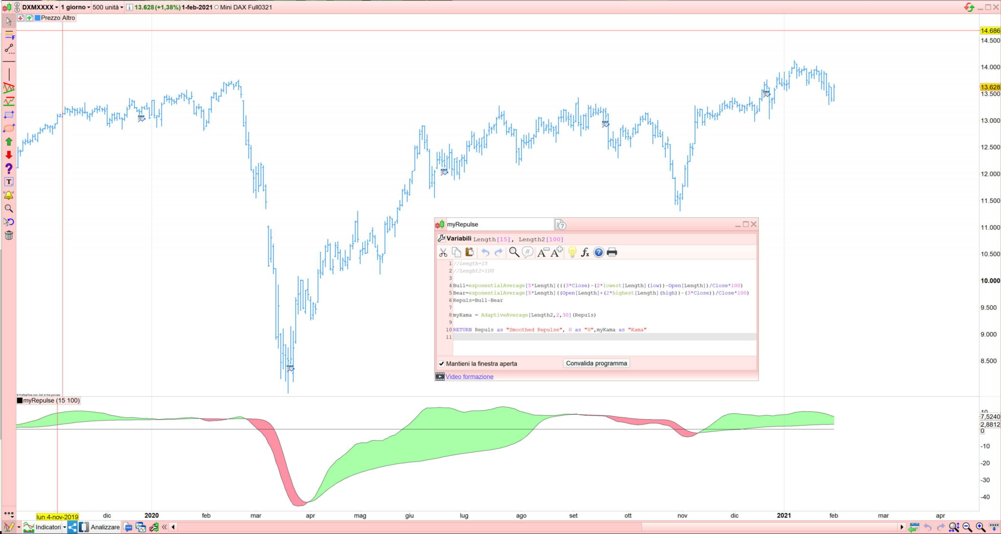 Allego come esempio il Dax daily con Repulse e Kama inserite come variabili. Nell’allegato vedi il repulse a 15 con una kama sul repulse a 100.