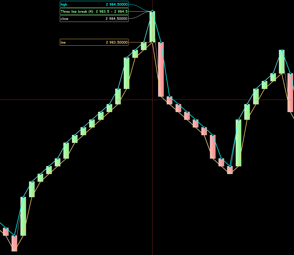 Un ThreeLineBreak n’a ni High, ni Low. En v10.3 on ne pouvait pas vérifier la valeur d’une variable avec sa valeur précédente intra-bougie, on peut le faire avec la v11, et donc garder en mémoire par exemple le plus haut atteint comme tu veux le faire, voir cet exemple de code :