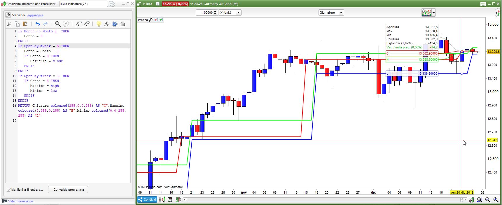 Ecco, non riesco a capire come individuare questi 3 valori. Mi aiutereste? Vi allego gli indicatori che ho creato io, sia per il massimo che per il minimo da un giorno all’altro.