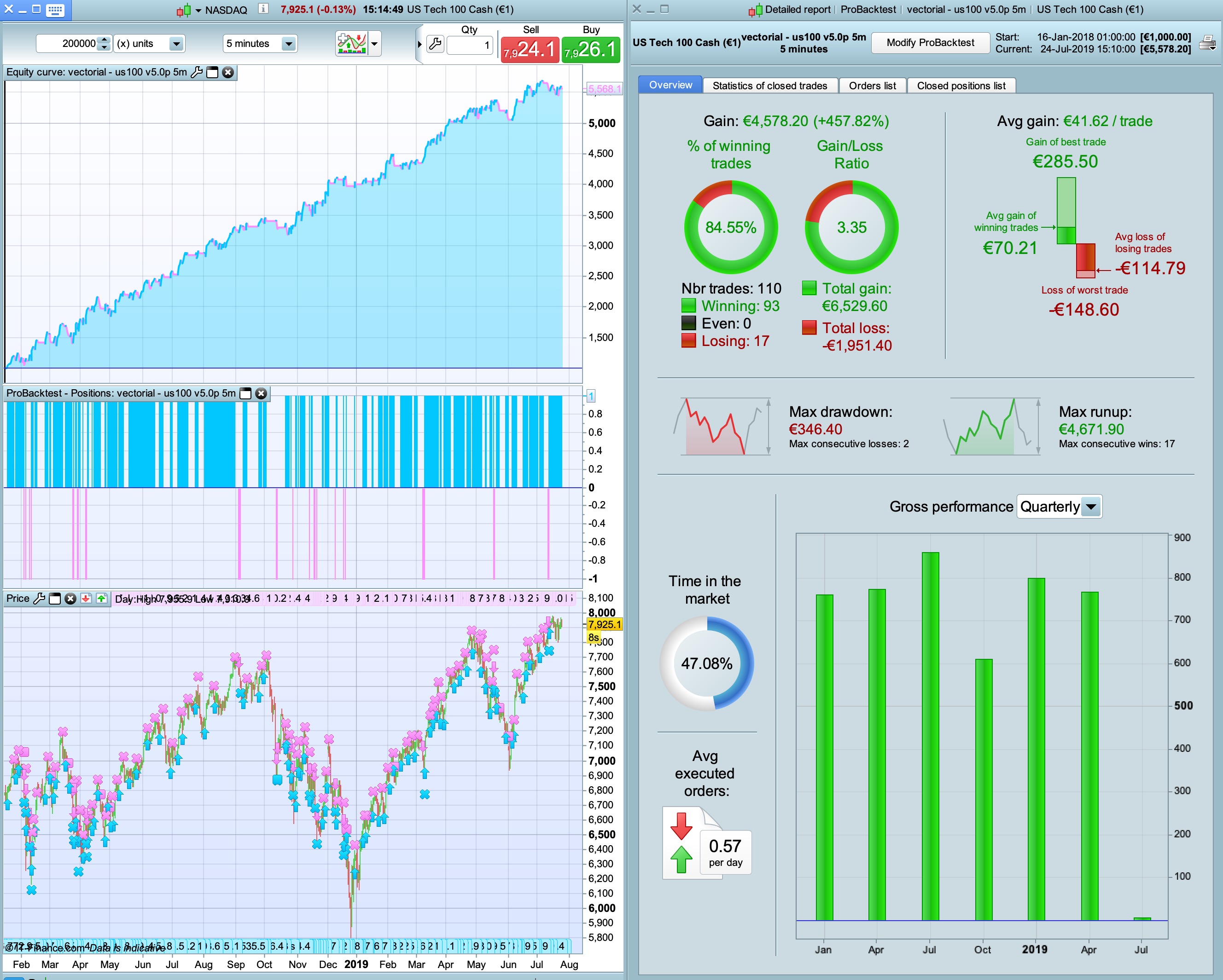 The only negative thing I found is that at times a trade can last several days. Example on UK100, a trade lasts 3 weeks in August 2018.