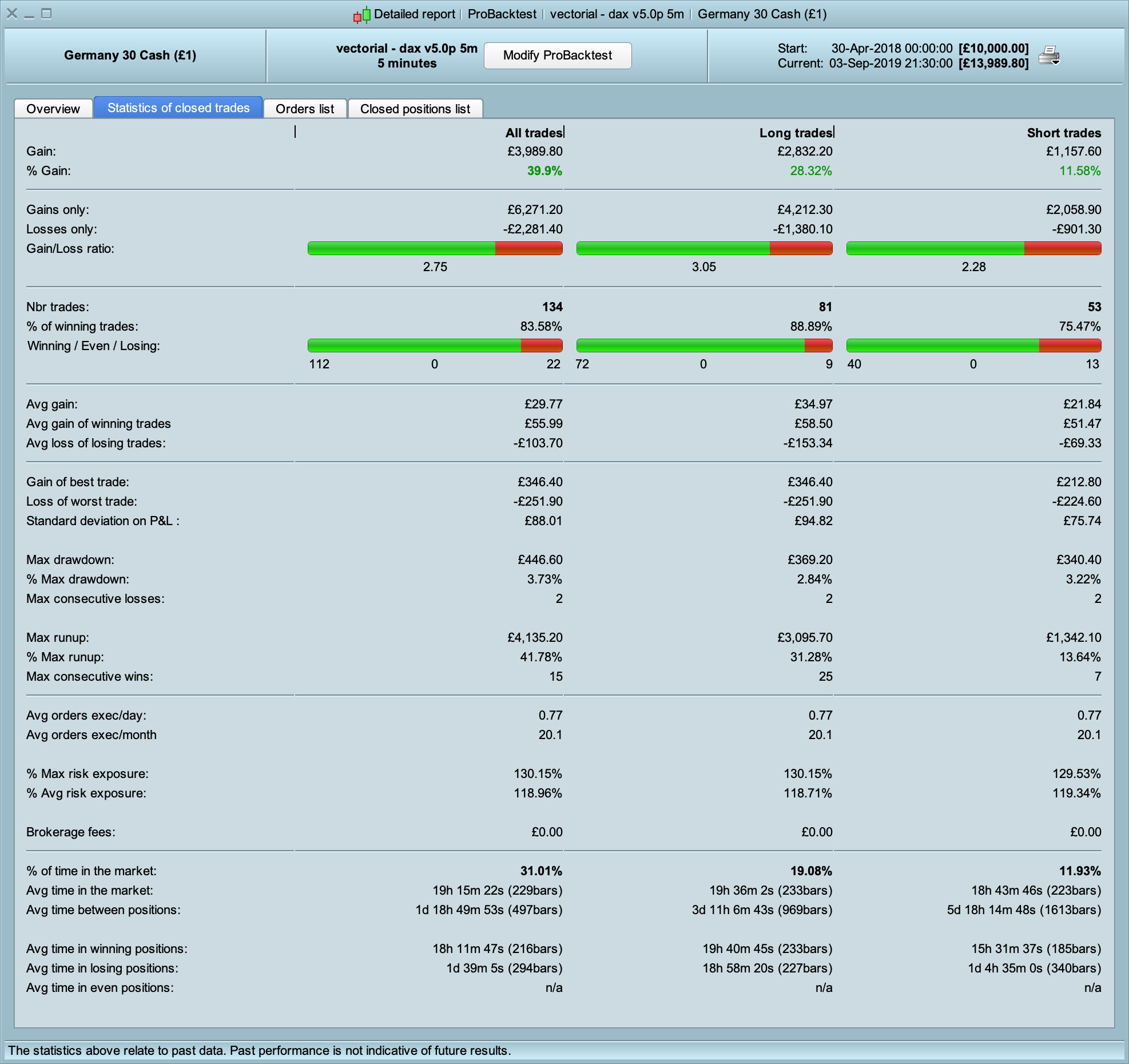 I’ve backtested this tonight using 100,000 and got the following results. This is nowhere near the 95% gain you got above. Is this due to the backtest period.