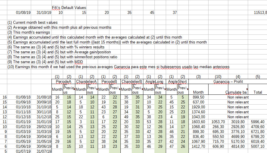 What I would put in July the average data (blue) obtained until June in the system. I would see how many gains that data gives me (10) but at the end of the month, I would calculate what the optimized data would have been (3) to have an average to use again in August. And so month after month, observing a trend in the means towards a midpoint of gains in the system.