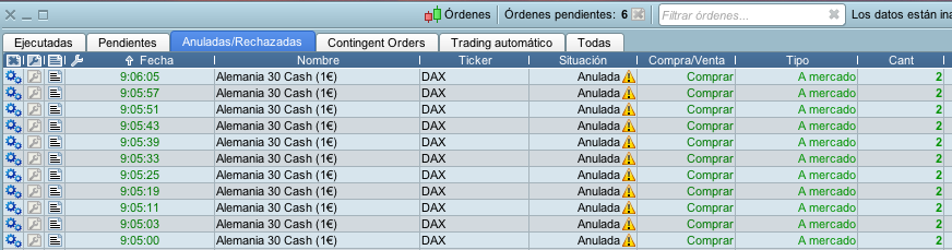 Strategies stopped due to rejected orders – lack of info