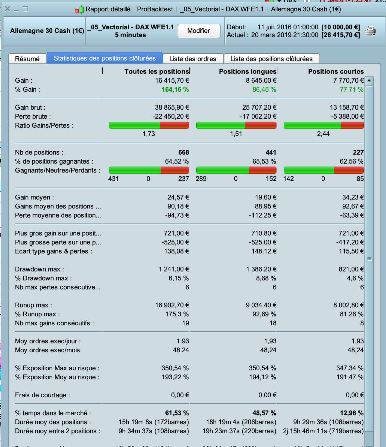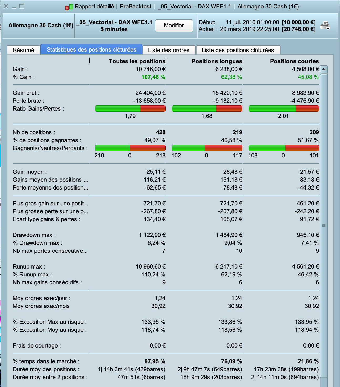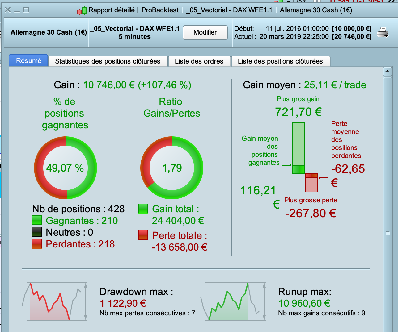 Hi Vonasi ! I recently worked on a new version of the code based on the various suggestions of this thread (Paul and Jebus89 in particular). I also did a Walk Forward on the variable “lag”. I also took into account your recommendations on the size of the positions and I added your code on money management. Here is the code and below the results. I would be happy to have your feedback and opinion. Thank you.