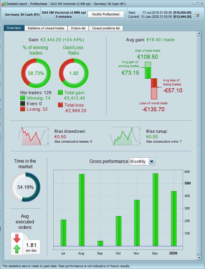 For comparison, this is v2 optimized for the same 6 month period; lower % win but higher gain, …