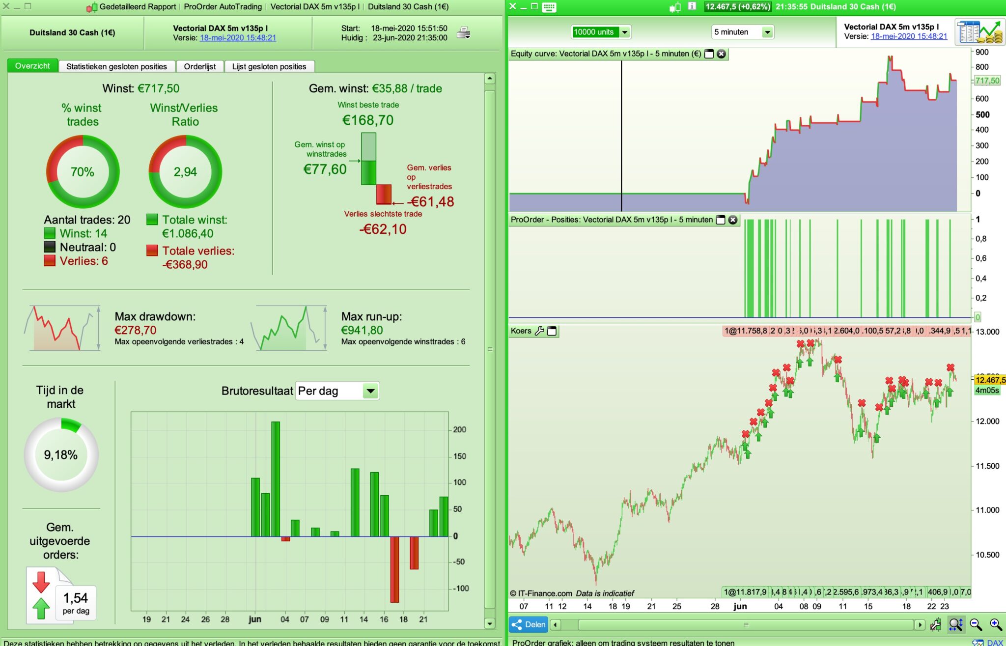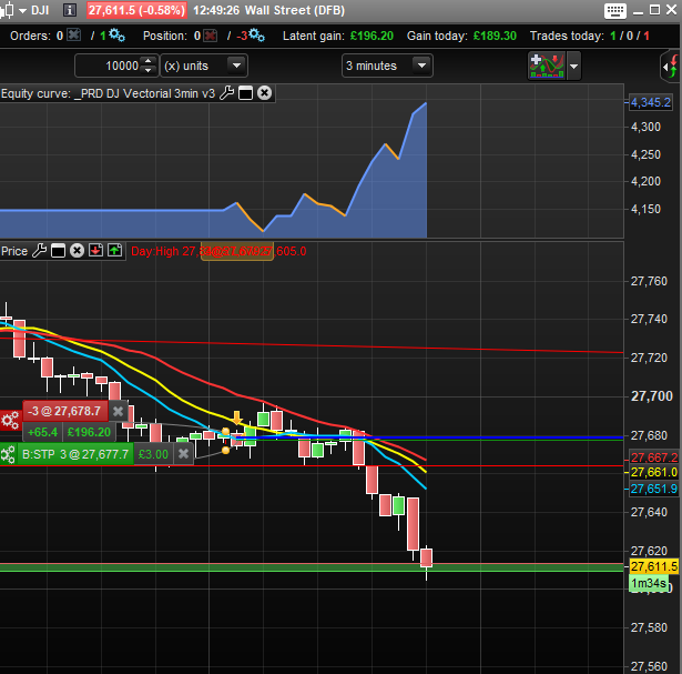 Hi – been running this live now for the last 3 days, trading on the DJI on a 3m time frame. This is on an IG Spread Betting account. Going very well, and live trading and stop loss is in line with the back testing results, which is always good to see!