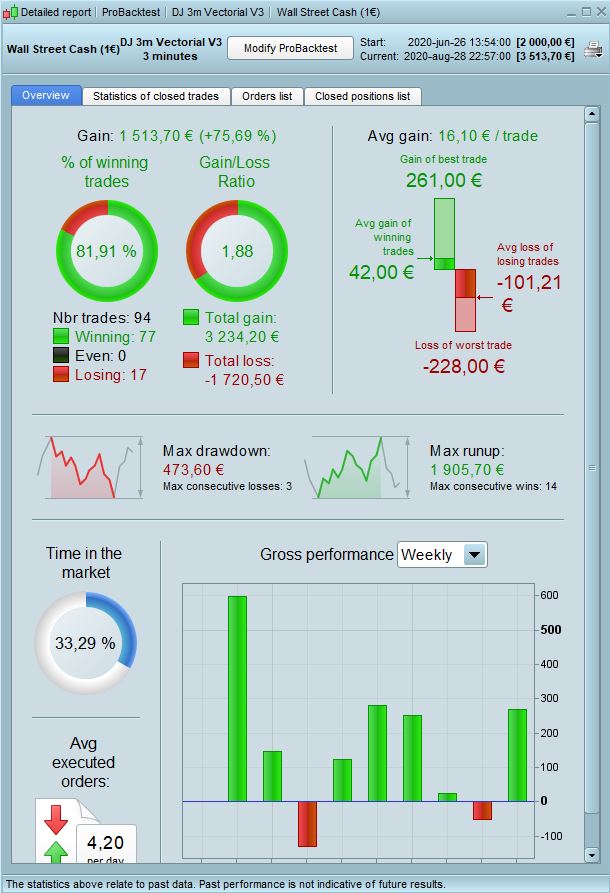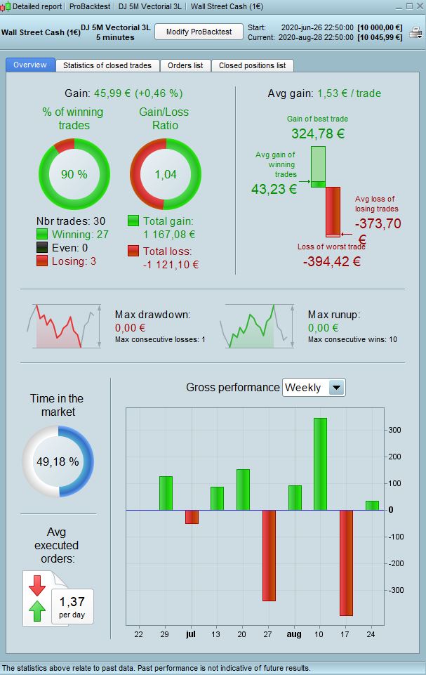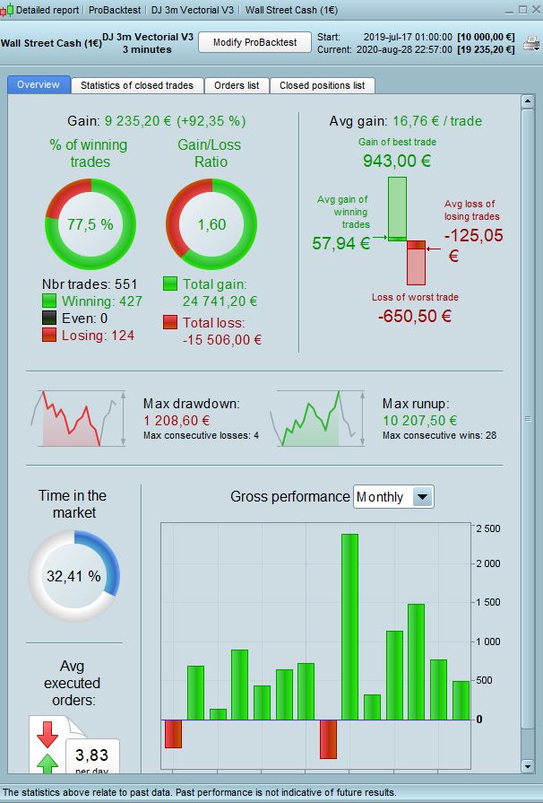 I made a backtest on the DJ 3m Vectorial V3 for the same period and it has been more succesfull.