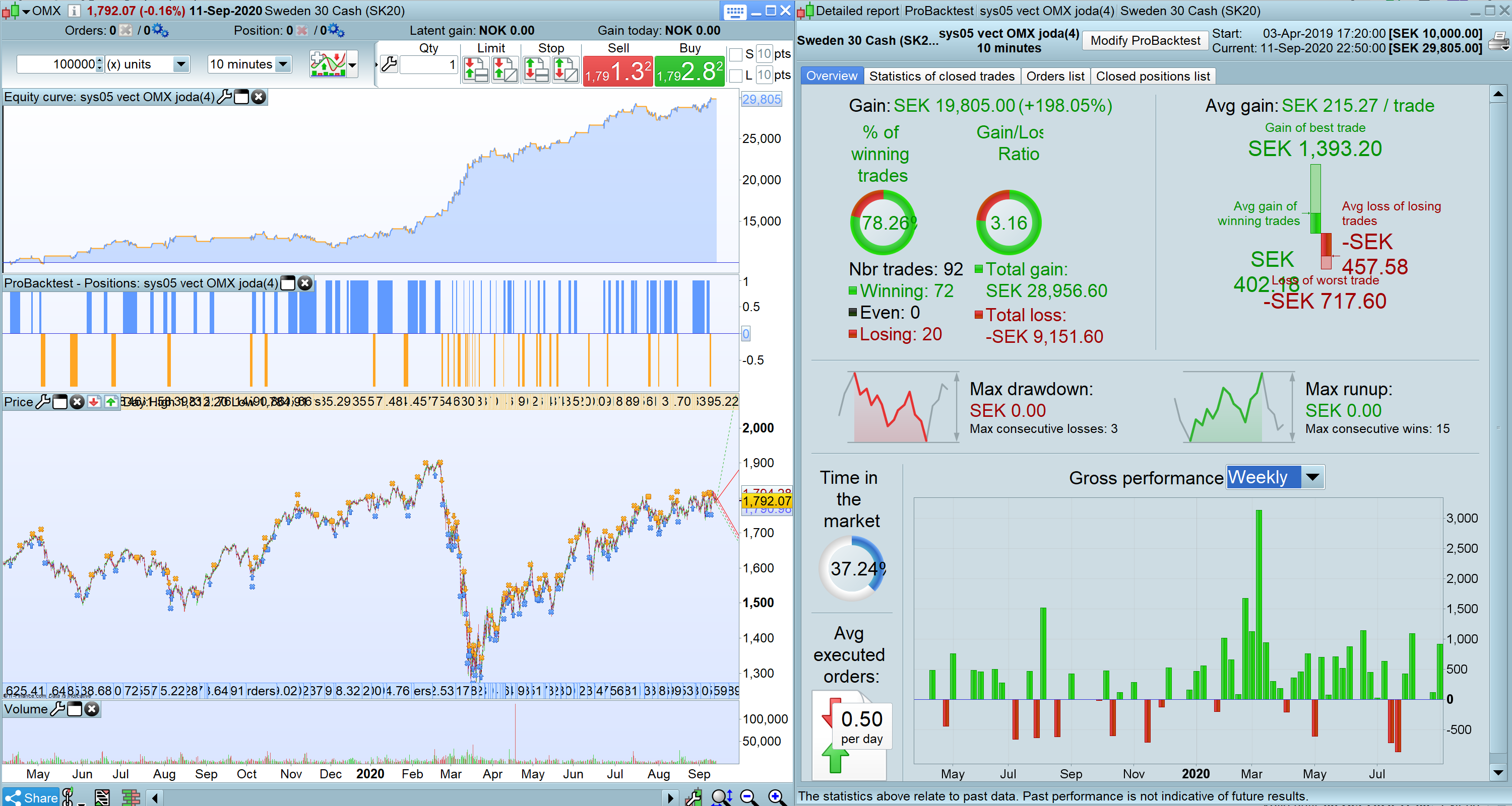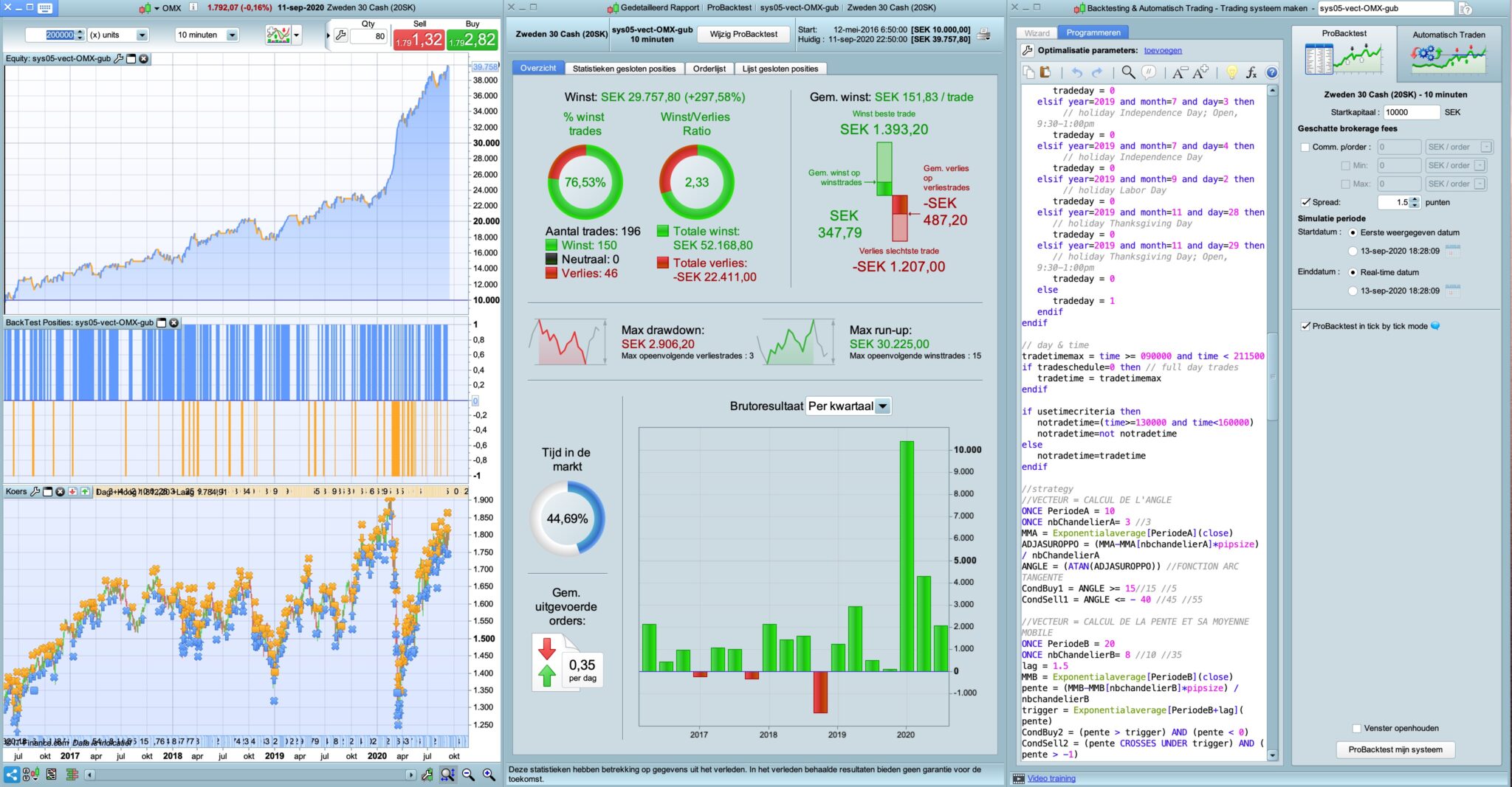 @paisantrader, I played around a bit with the sys-05 vectorial -us100 v5.(1) code on OMX and got interesting backtest results. It might not be very robust though and honestly I don’t have a deep enough understanding of how the trailing stop and much of the code works. Mostly just optimized angle, nbChandelier and TP, SL…