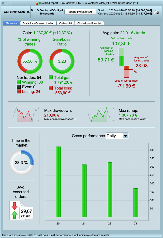 However, I saw that you’ve added a %Profit stop, don’t you think that it is too optimized on the backtest? This variable suits perfectly the backtest but don’t you think it could block some positions to go higher if high and sudden volatility?