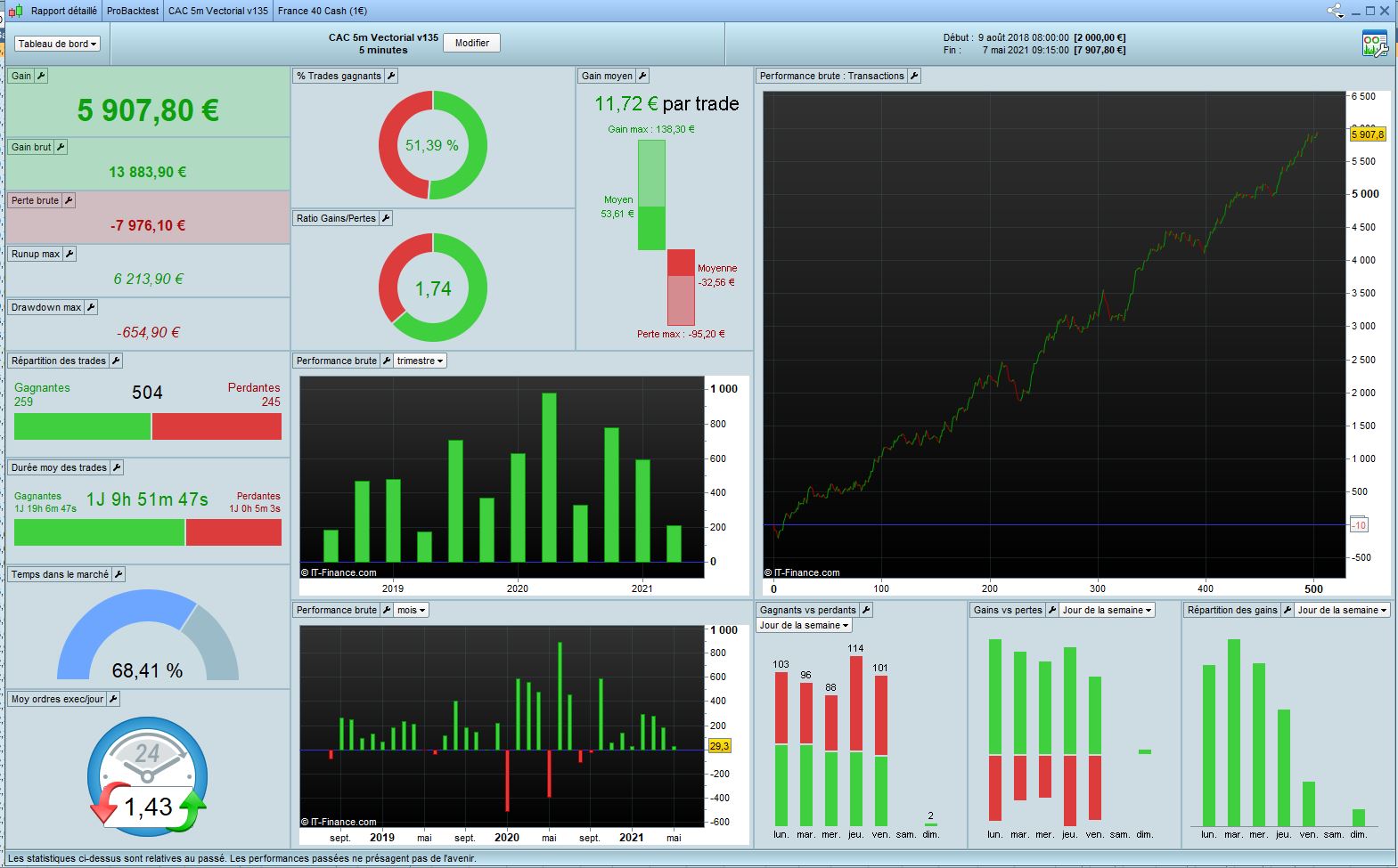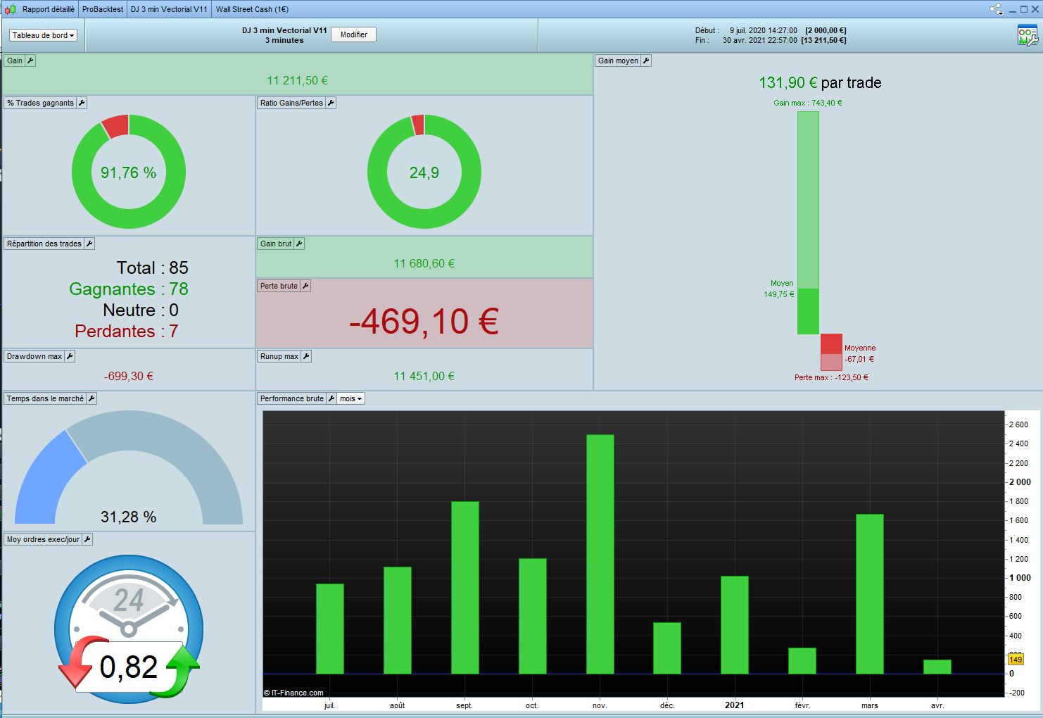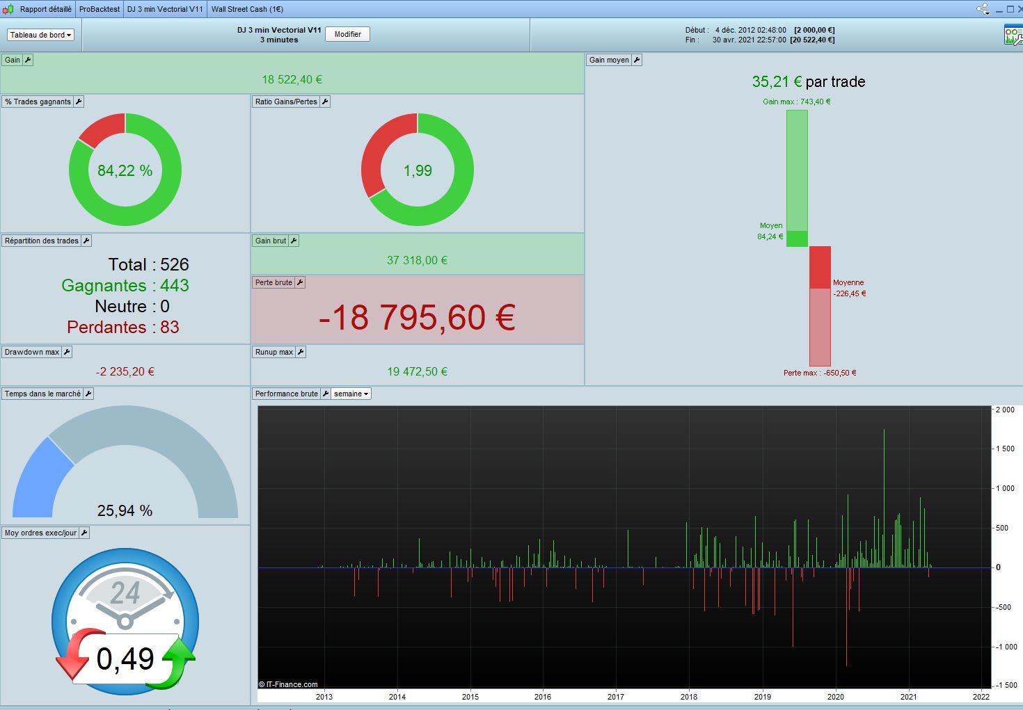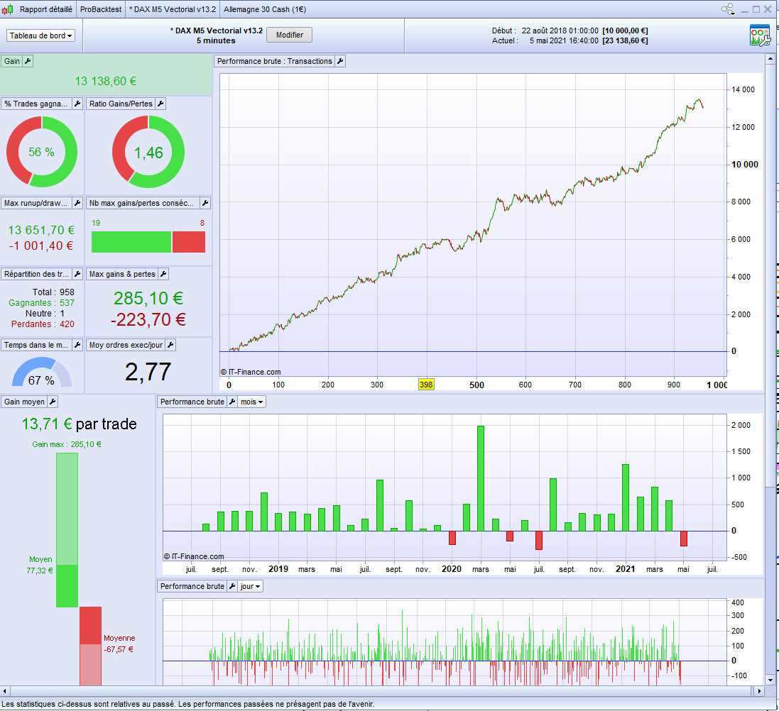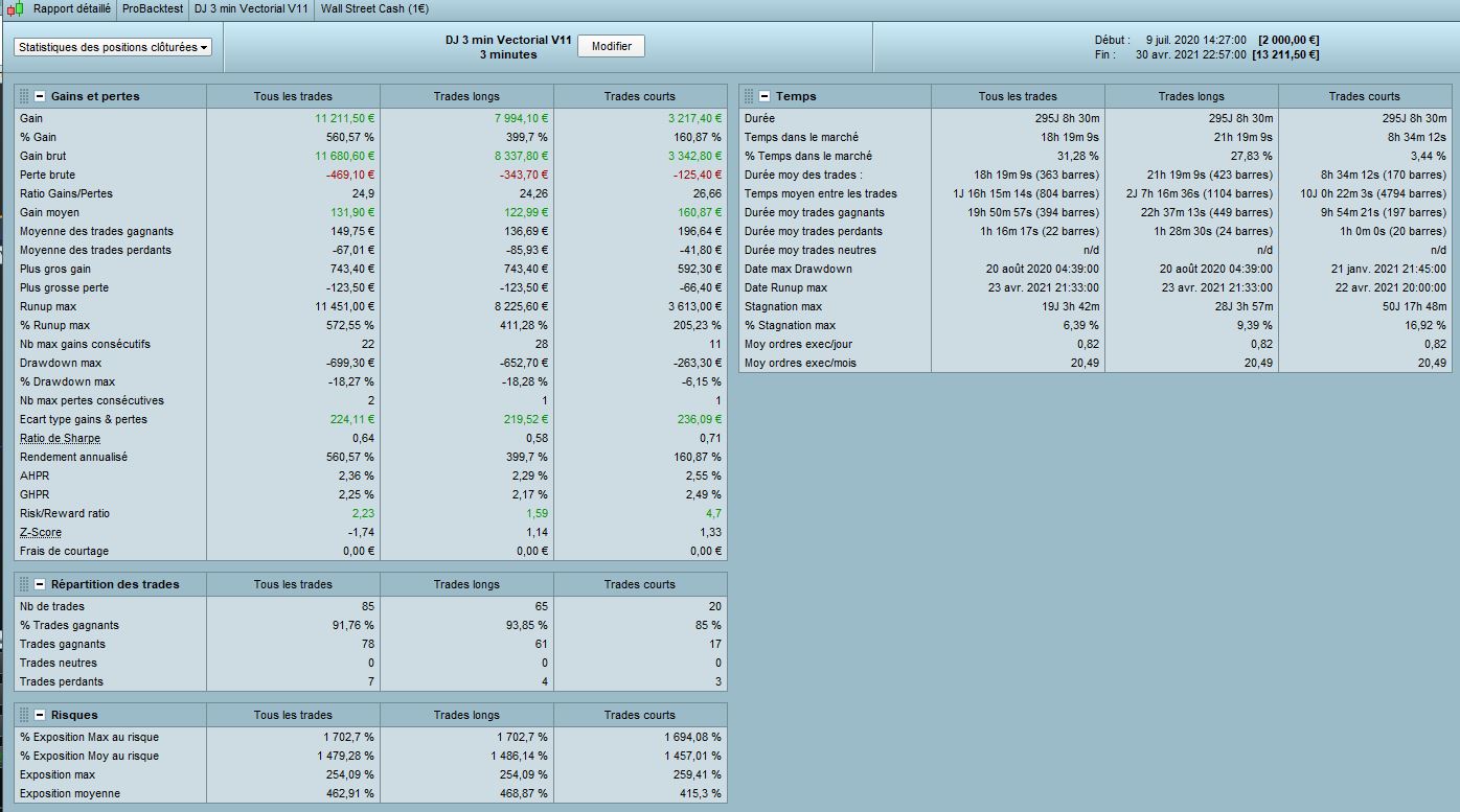 So it’s finally a quiet good idea to test the DJ 3min Vectorial V11 in Long AND Short. I share you the results in 100k and 1M. We only have a short loose in 2013 with this version. But it’s clearly a code who works since 1/2 years.