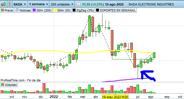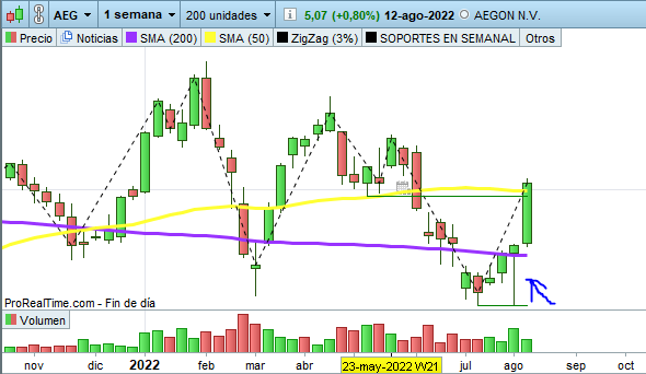 - Que el cierre de la vela esté por encima de la media 200 en Semanal