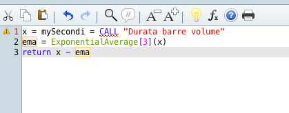Creato questo indicatore, vorrei calcolare la differenza tra esso e la sua media mobile esponenziale a 3 periodi.