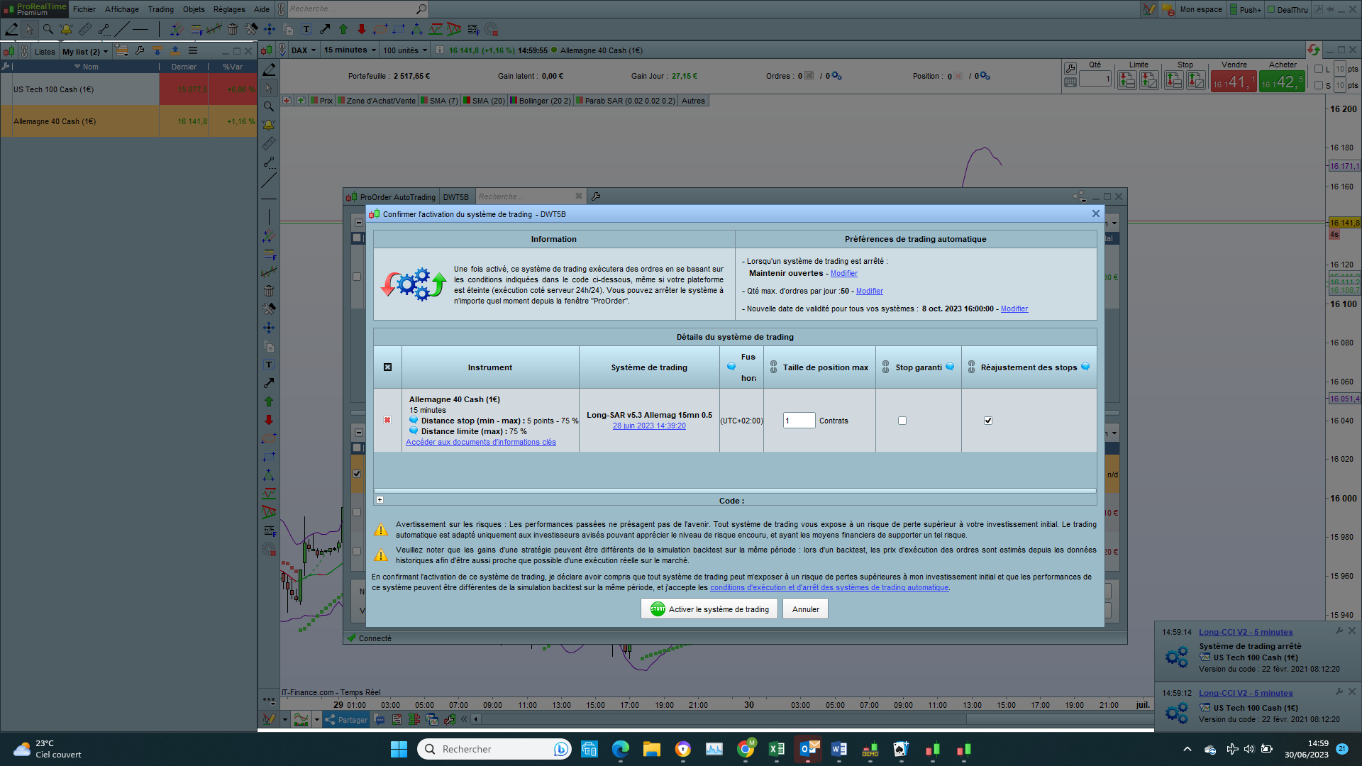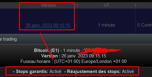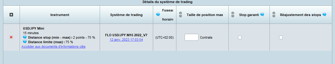 Lors du lancement d’un système de trading il est possible d’activer les options Stop garanti et réajustement des stops.