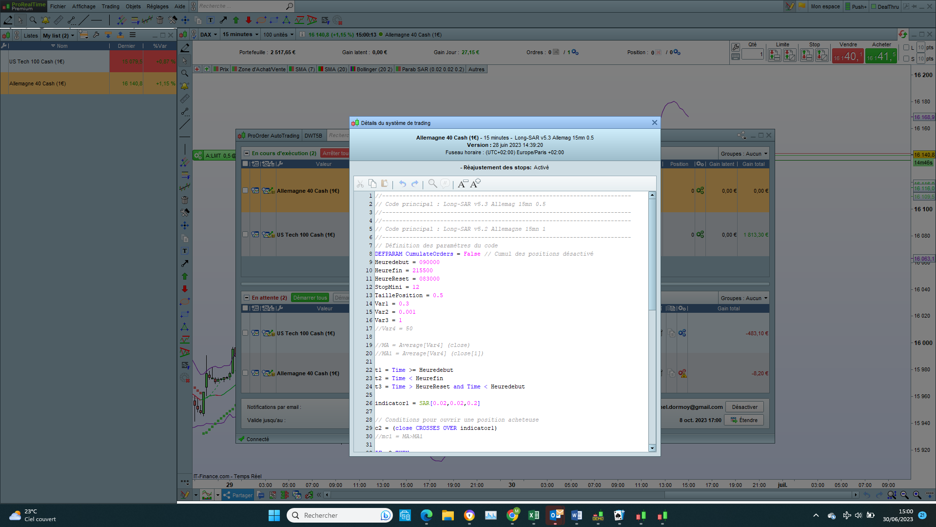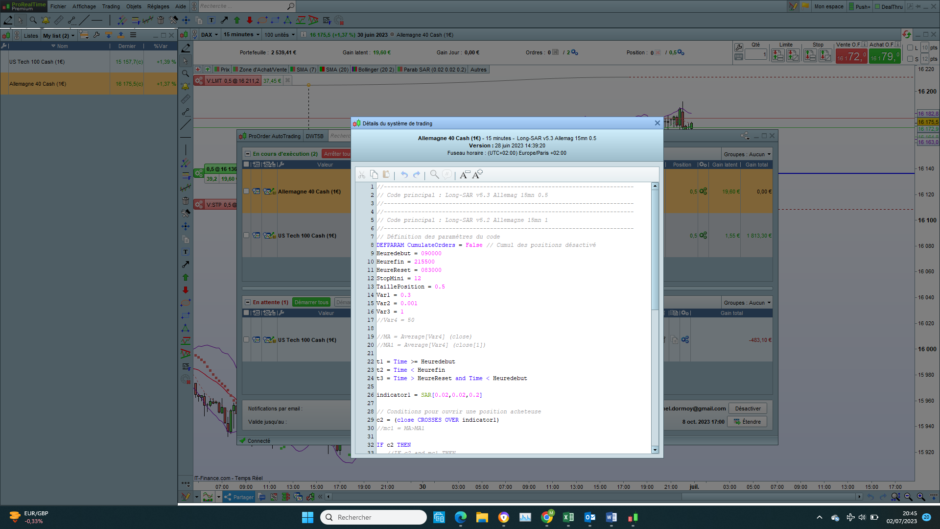 - J’active bien l’option réajuster les stops au lancement de la stratégie.