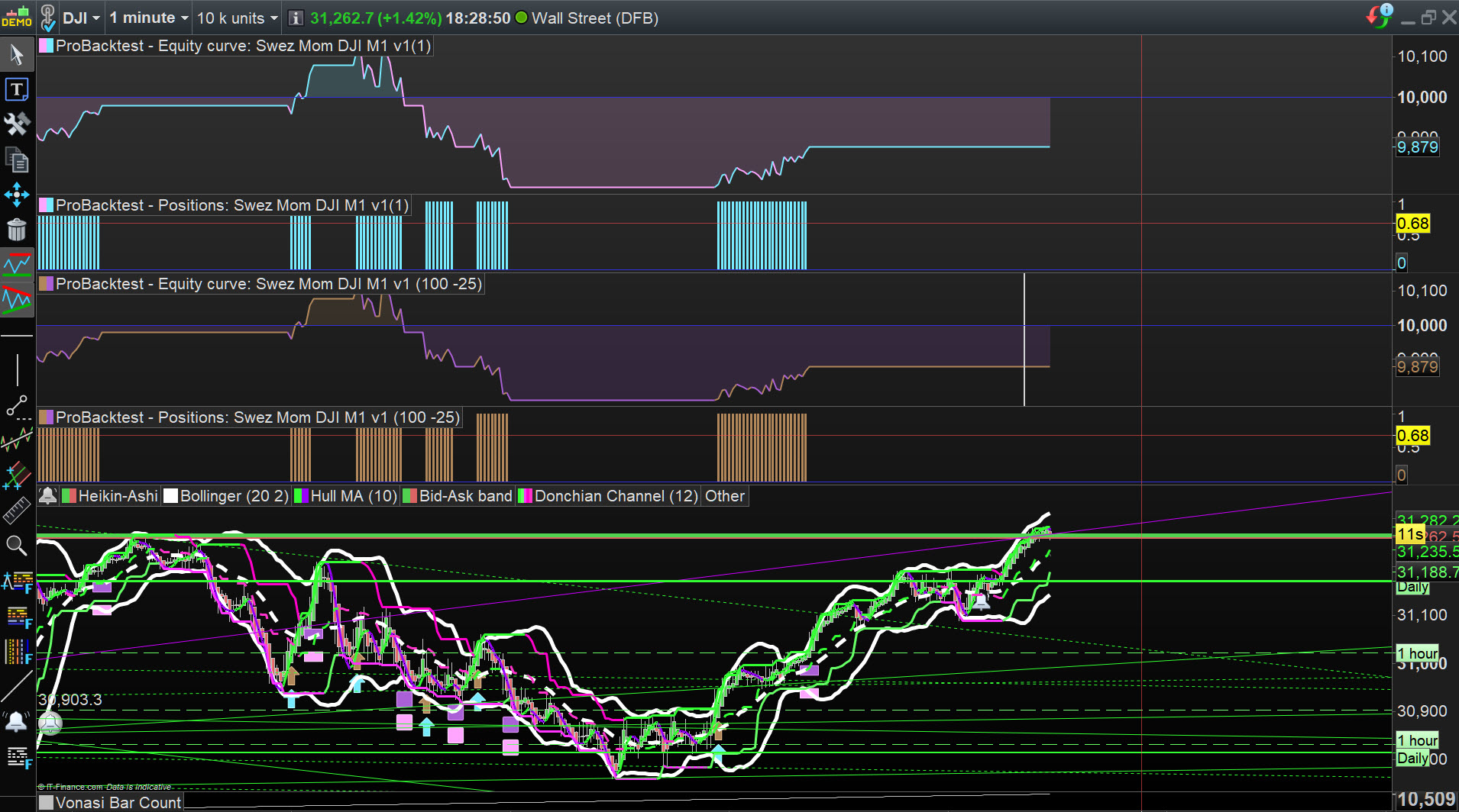No trades were opened to the right of the line when the Algo was left running in realtime.