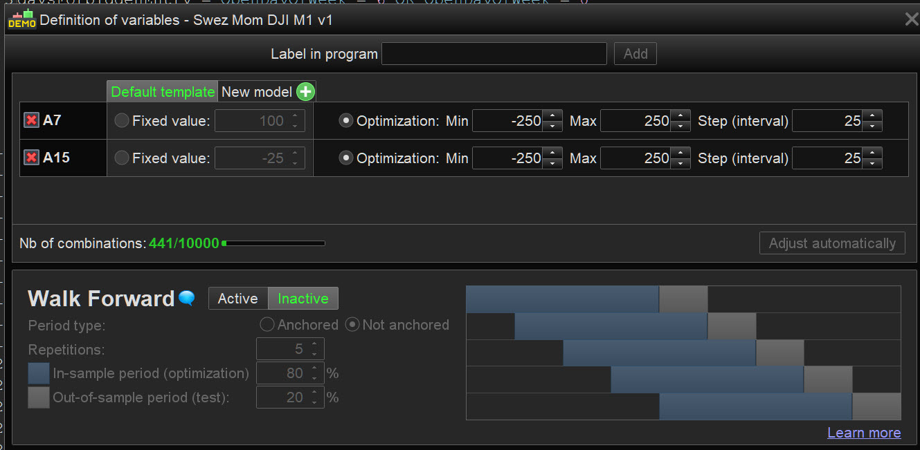 -The one on top has variables fixed, but still in the Optimiser. The other two has only fixed numbers. It´s a template that runs the backtests every time I open it.