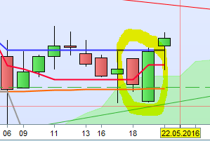 Result: Signal on Thursday 19th (the bar before the last bar???)
