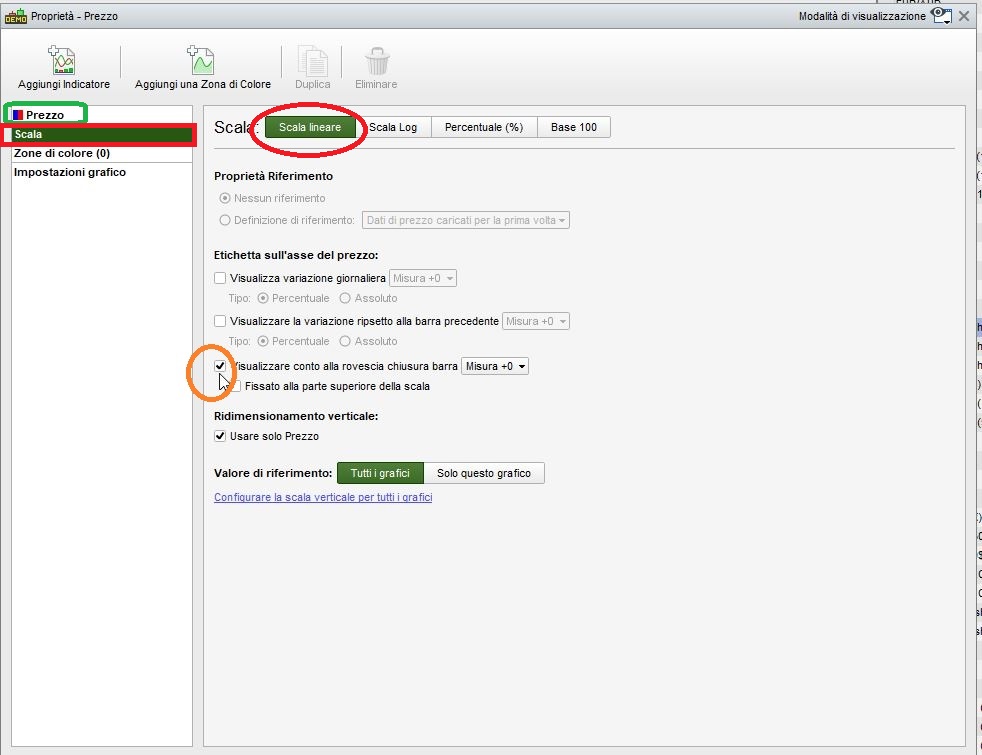 Visualizza Tempo alla chiusura BARRA